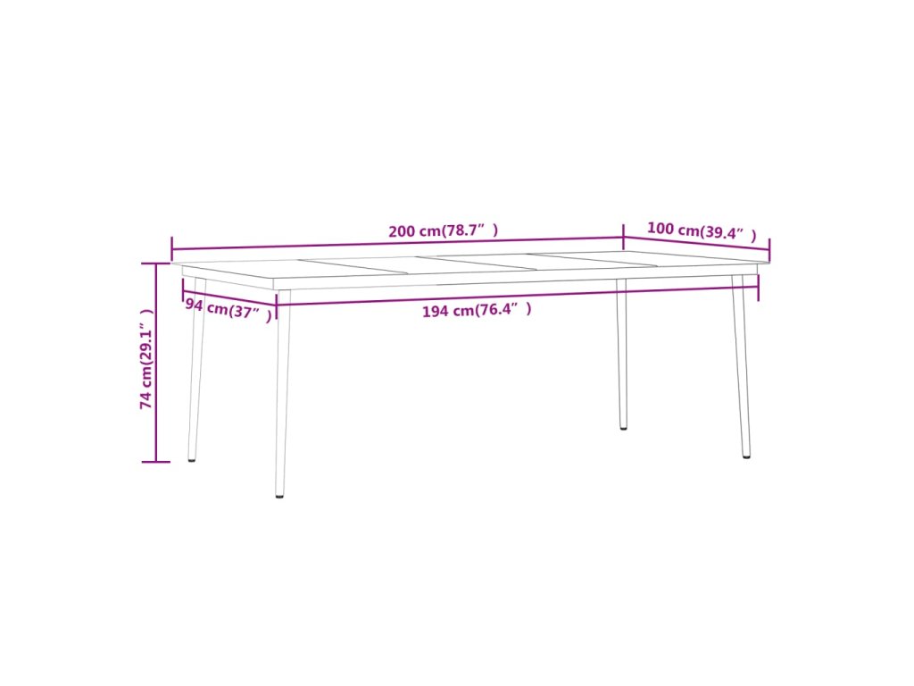 - Rozměry stolu: 200 x 100 x 74 cm (D x Š x V)