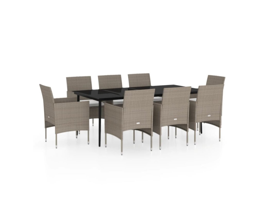9dílný zahradní jídelní set s poduškami béžový a černý 3099328