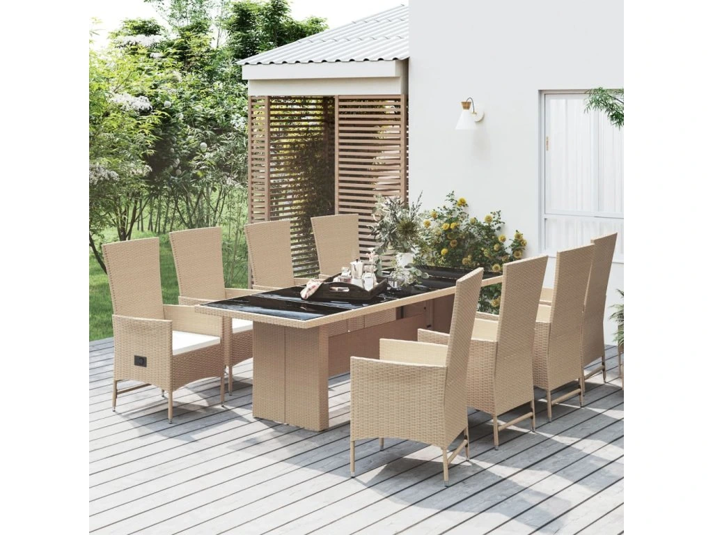 9dílný zahradní jídelní set s poduškami béžový polyratan 3157573