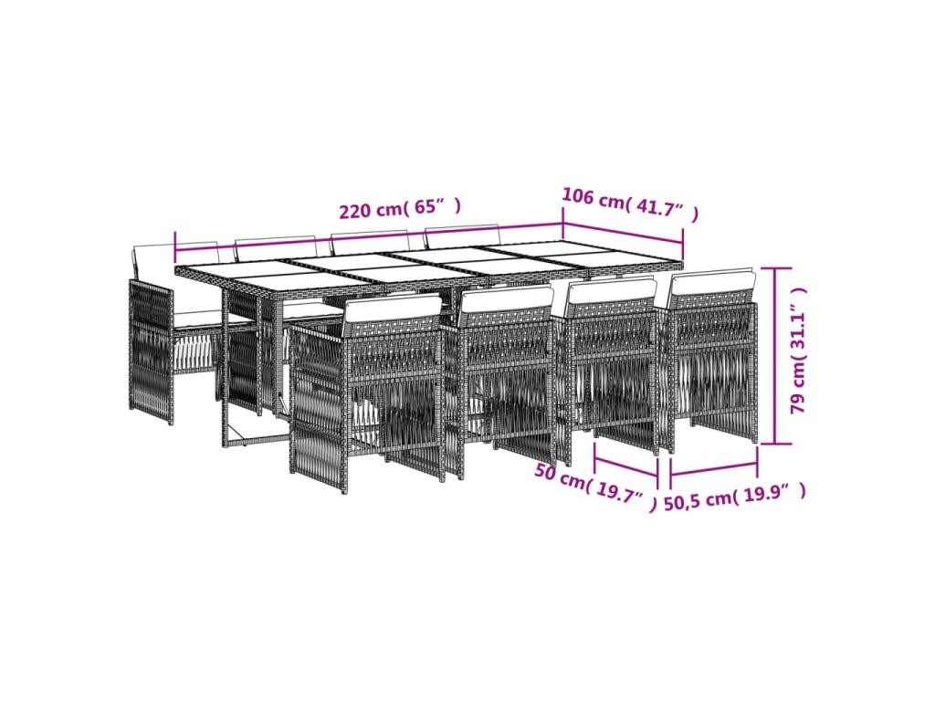 Tento zahradní jídelní set je skvělou volbou pro stolování pod širým nebem nebo jen tak pro odpočívání na zahradě, dvorku či terase.