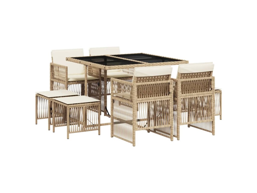 9dílný zahradní jídelní set s poduškami béžový polyratan 3210958