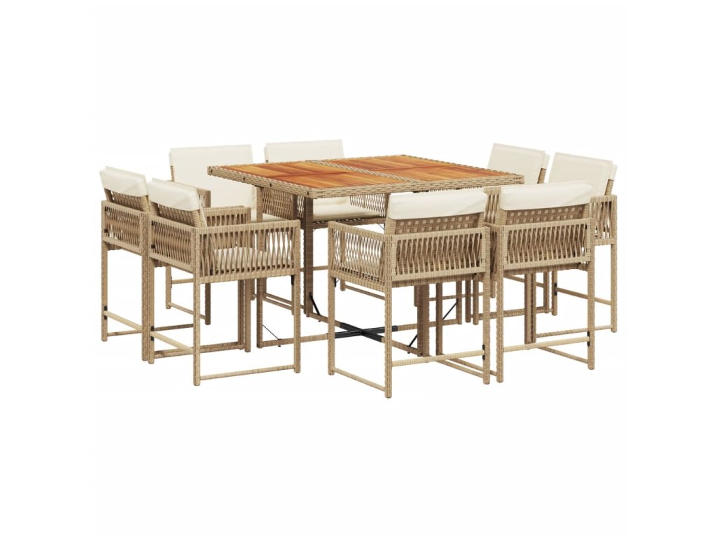 9dílný zahradní jídelní set s poduškami béžový polyratan 3211564