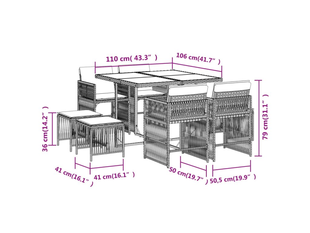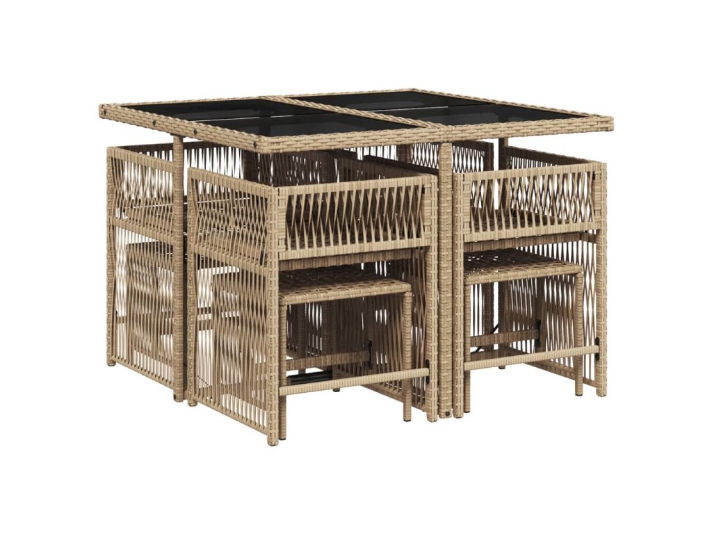 9dílný zahradní jídelní set s poduškami béžový polyratan 3211678