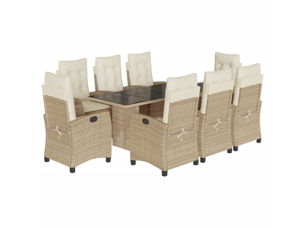 9dílný zahradní jídelní set s poduškami béžový polyratan 3212693