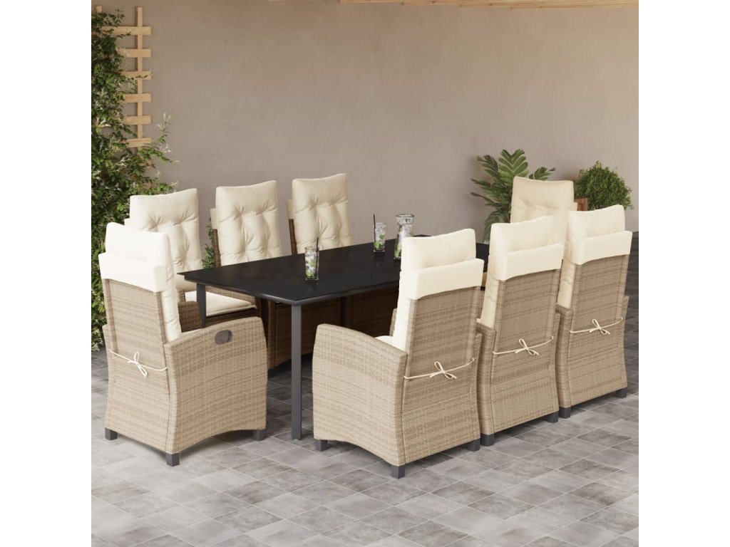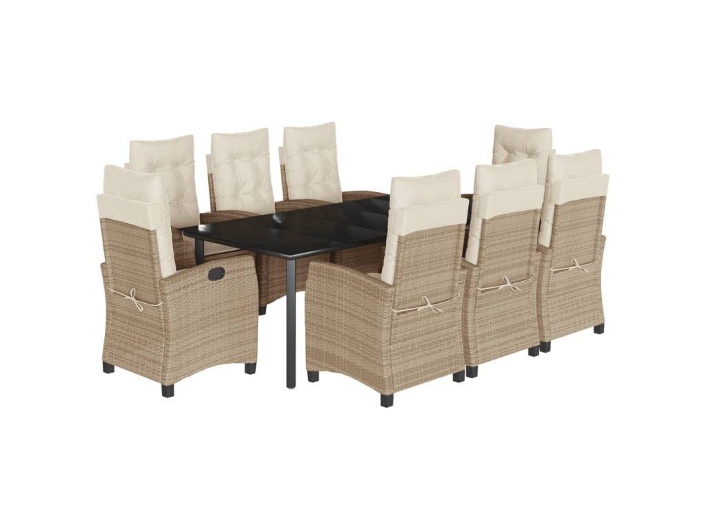 9dílný zahradní jídelní set s poduškami béžový polyratan 3212821