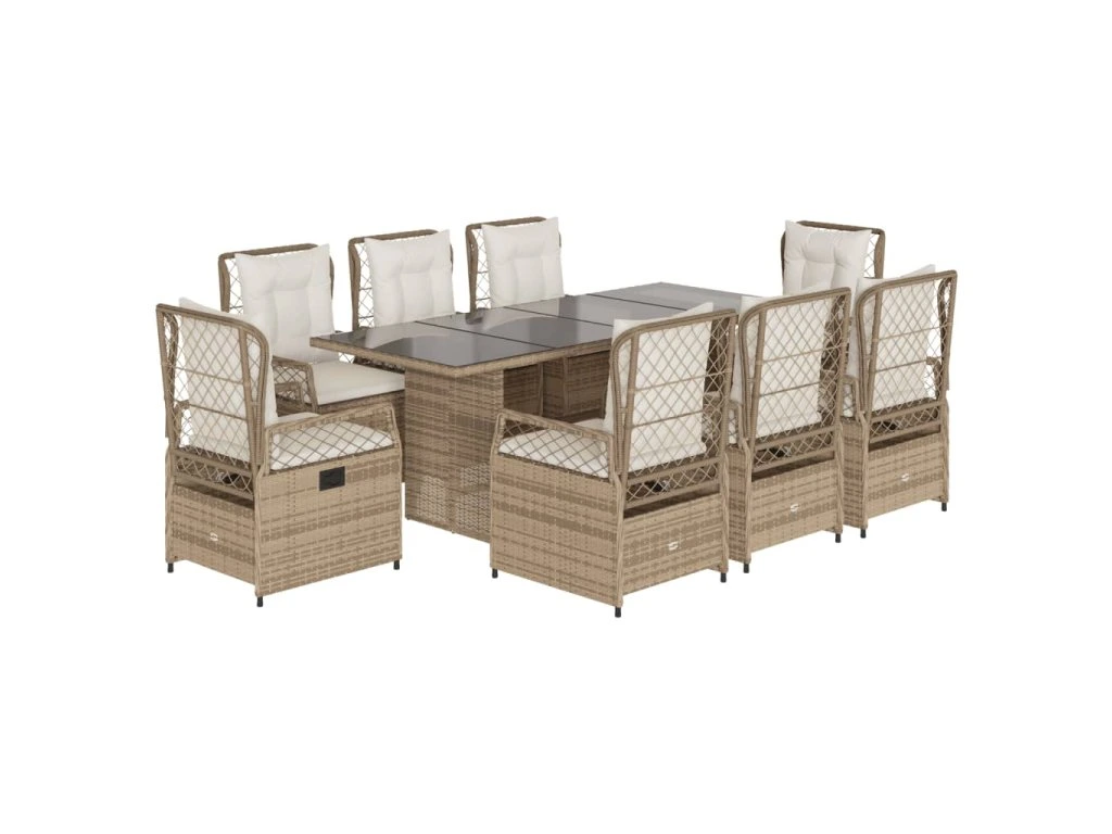 9dílný zahradní jídelní set s poduškami béžový polyratan 3262937