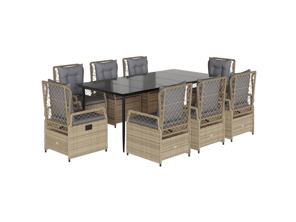 9dílný zahradní jídelní set s poduškami béžový polyratan 3263005
