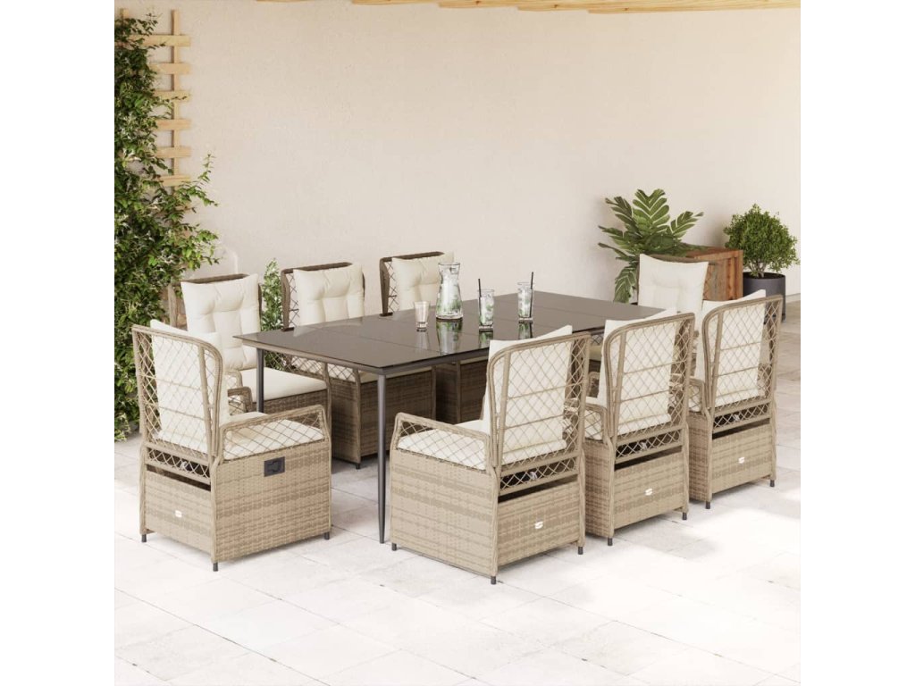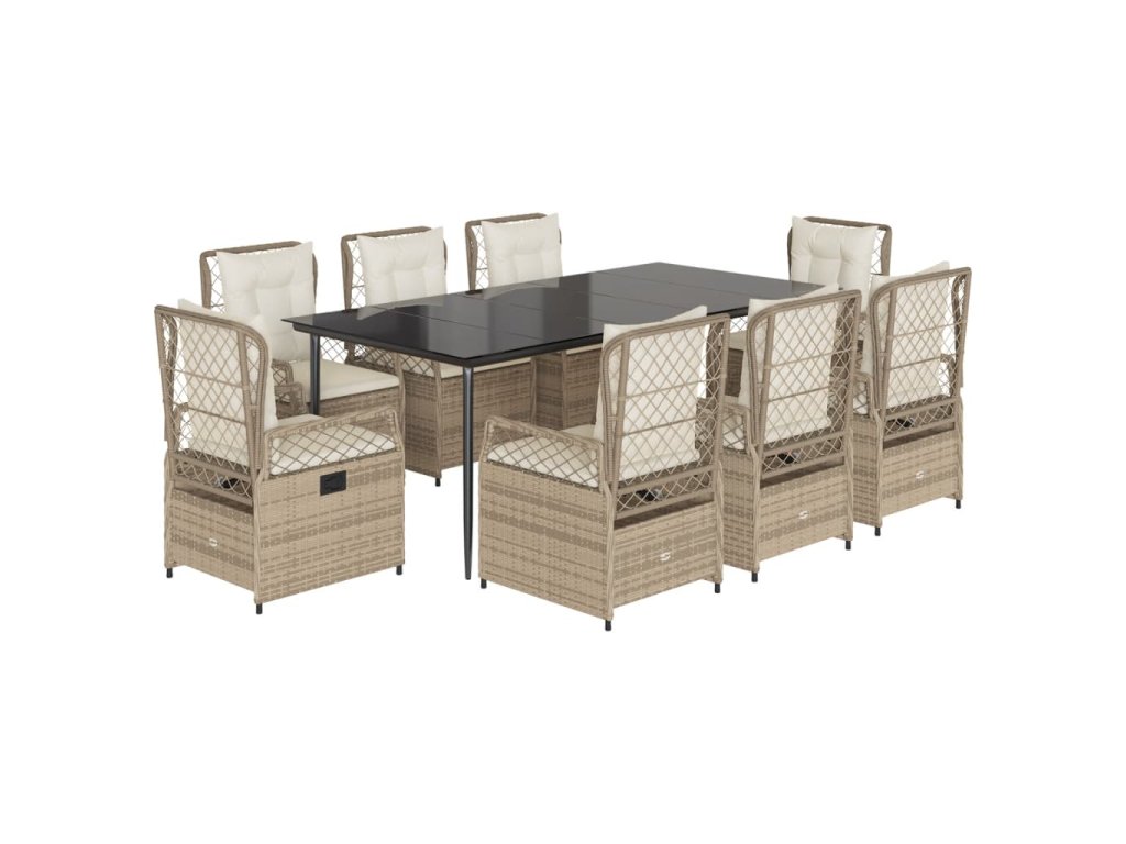 9dílný zahradní jídelní set s poduškami béžový polyratan 3263019