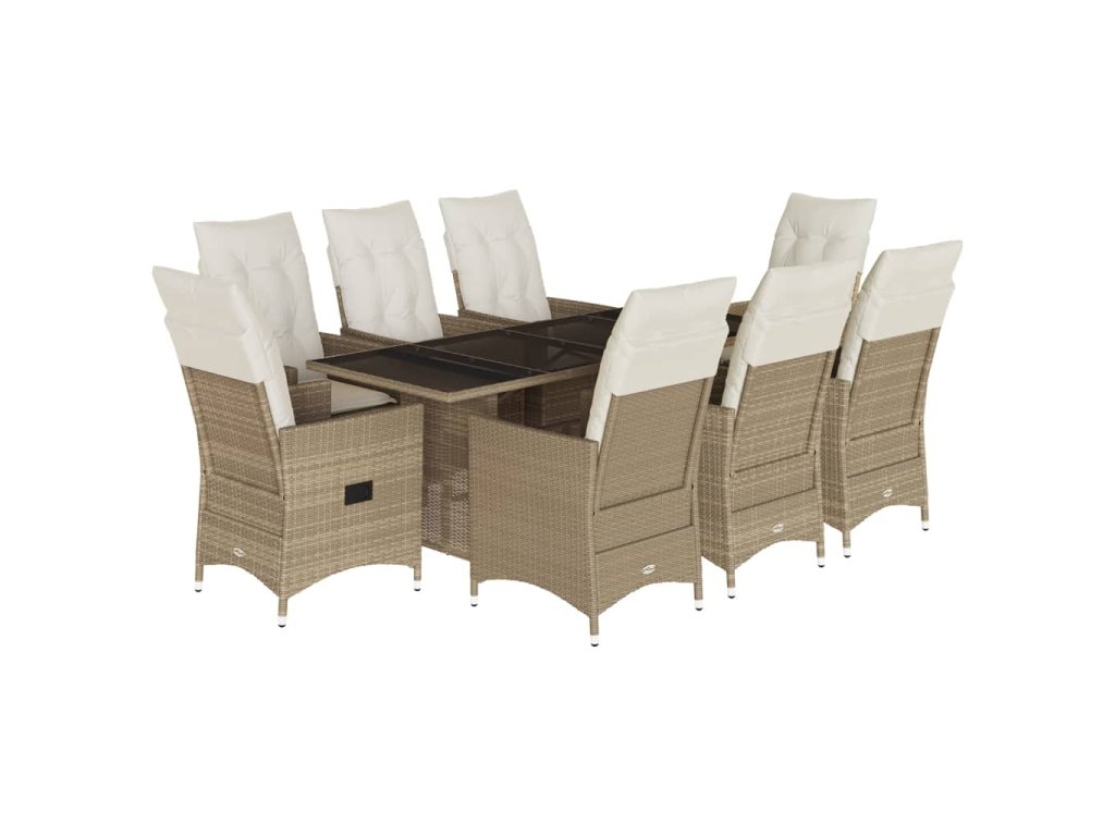 9dílný zahradní jídelní set s poduškami béžový polyratan 3276809