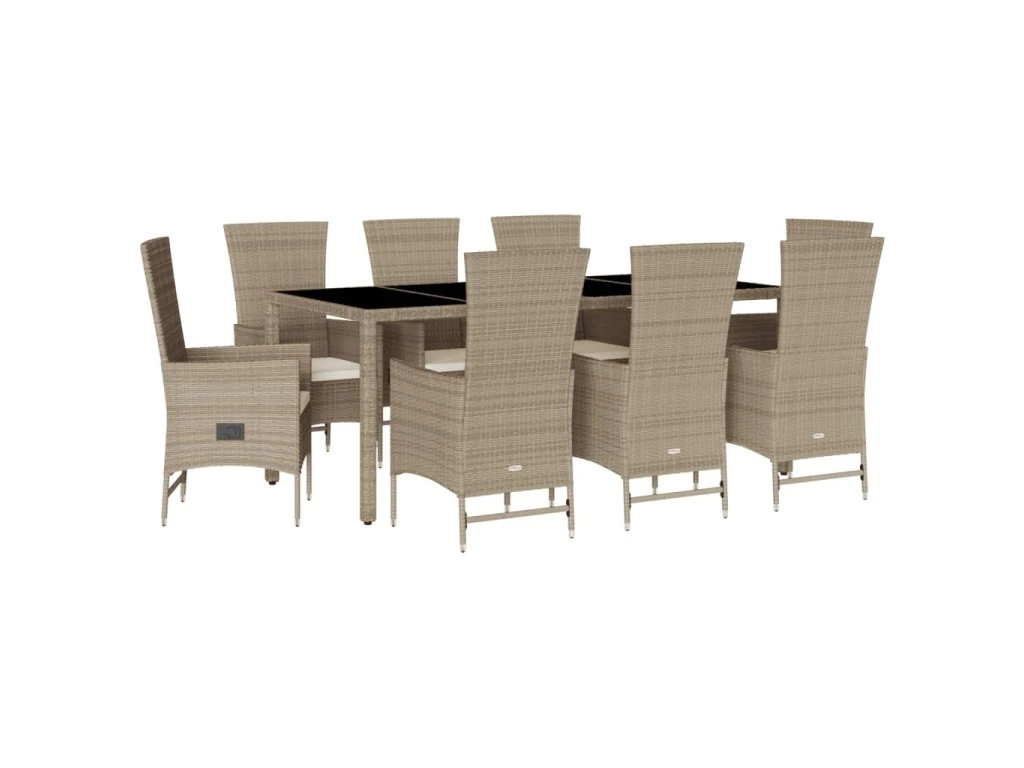 9dílný zahradní jídelní set s poduškami béžový polyratan 3277580