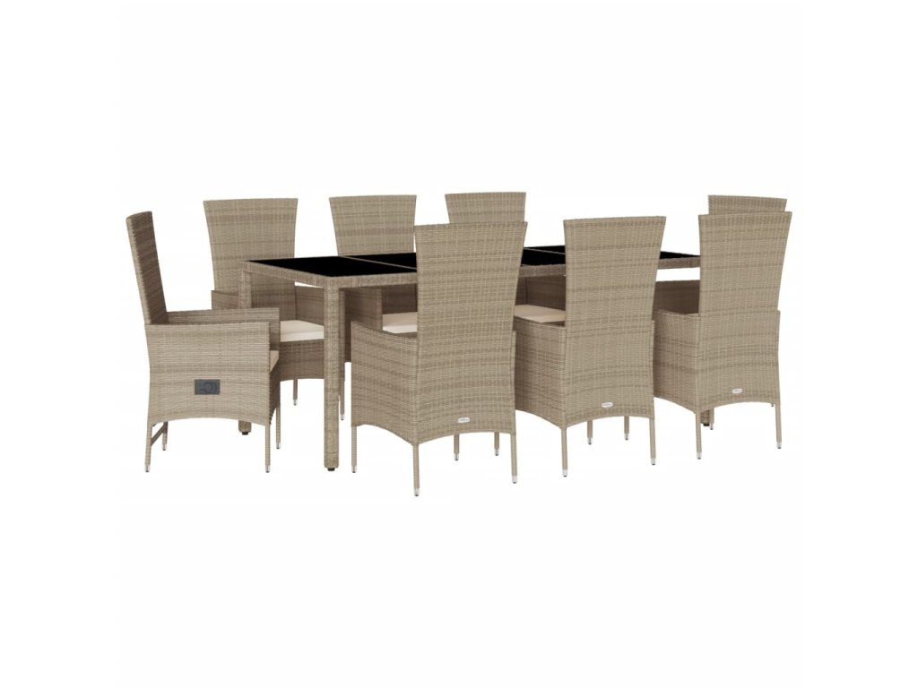 9dílný zahradní jídelní set s poduškami béžový polyratan 3277581