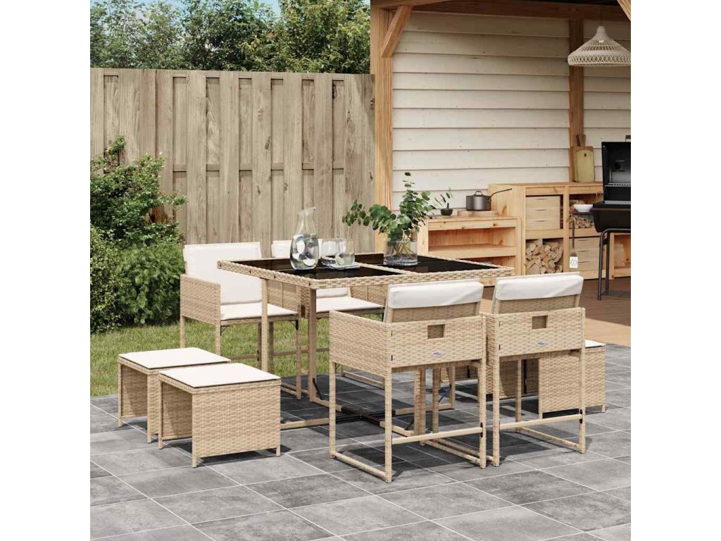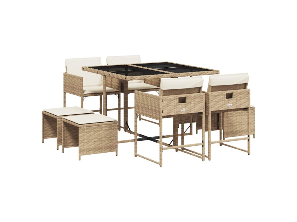 9dílný zahradní jídelní set s poduškami béžový polyratan 3278085