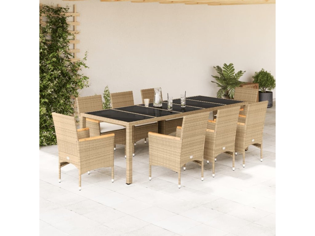 9dílný zahradní jídelní set s poduškami béžový polyratan a sklo 3278737