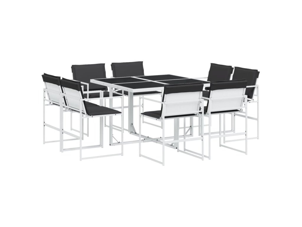 9dílný zahradní jídelní set s poduškami bílý textilen 3295108