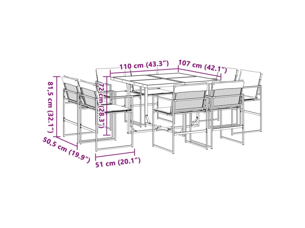 - Robustní a stabilní rám: Ocelový rám s práškovým nástřikem zajišťuje, že zahradní nábytek je pevný a stabilní pro každodenní venkovní použití.