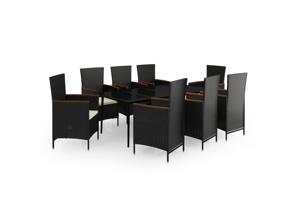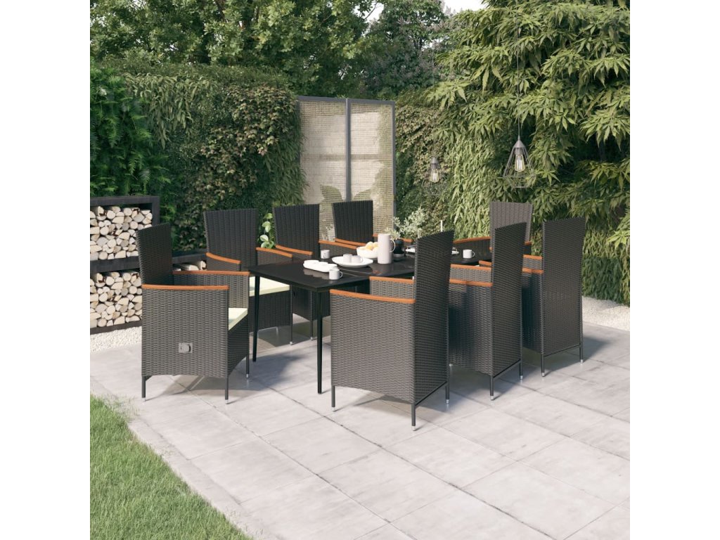 9dílný zahradní jídelní set s poduškami černý 3099448