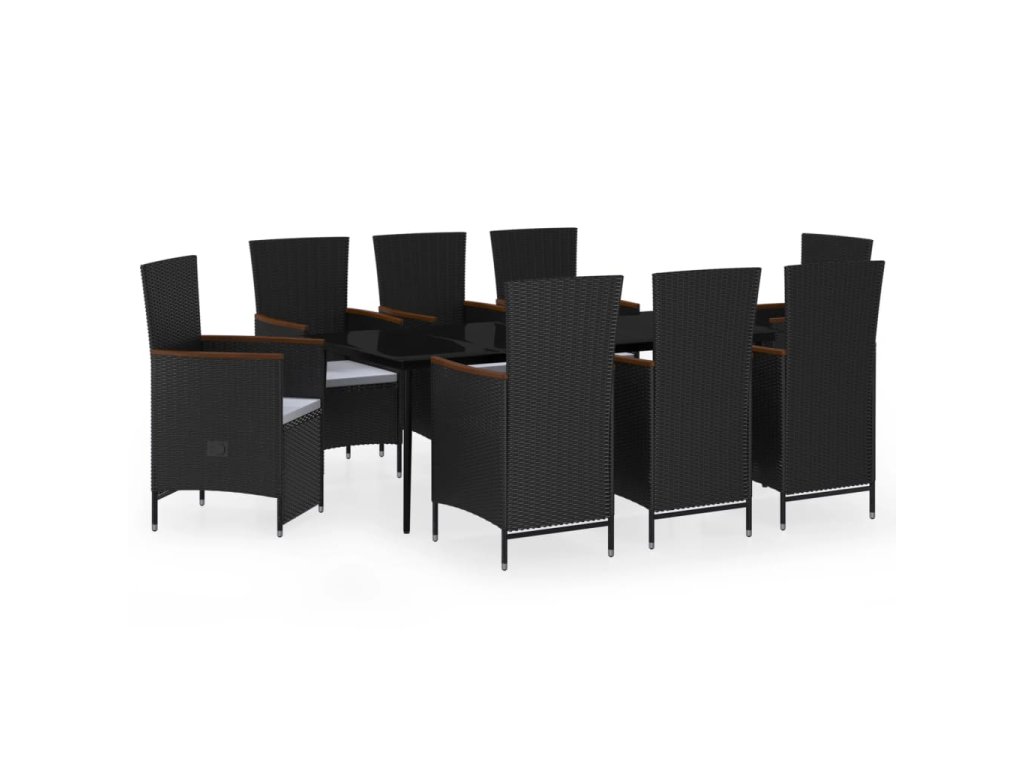 9dílný zahradní jídelní set s poduškami černý 3099468