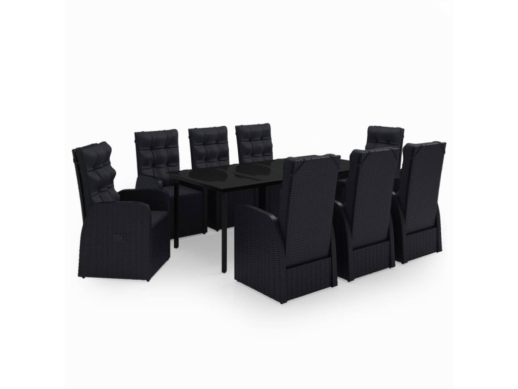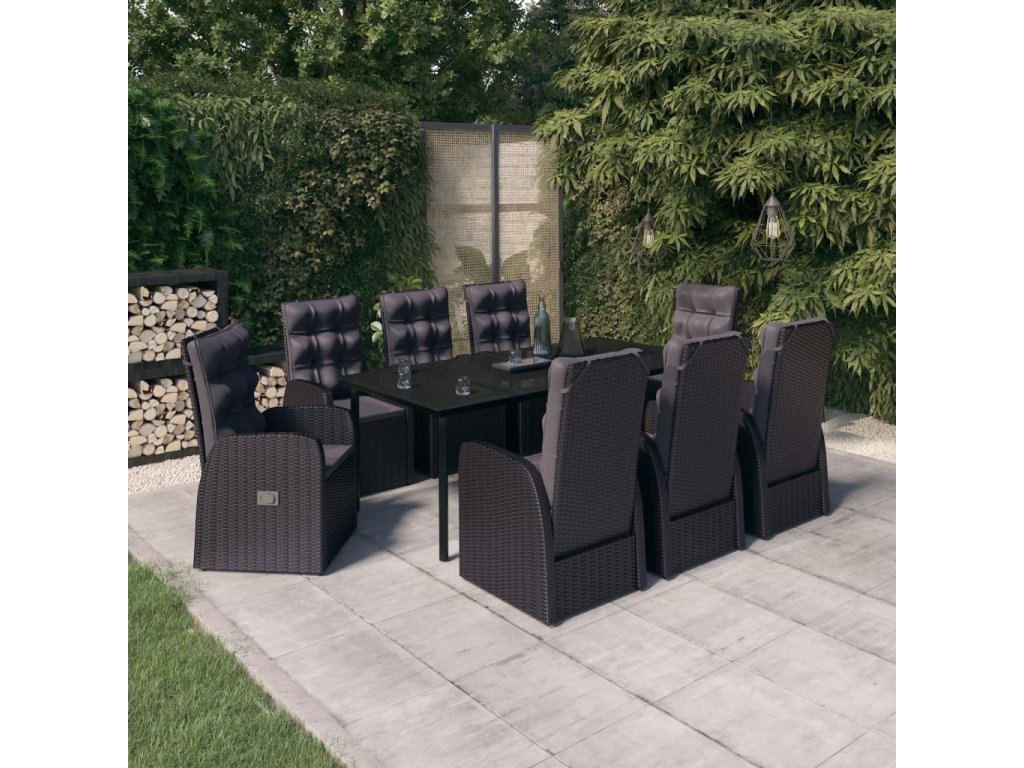9dílný zahradní jídelní set s poduškami černý 3099484