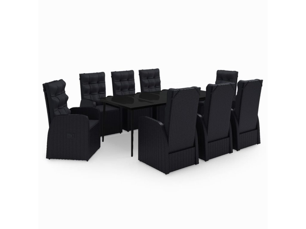 9dílný zahradní jídelní set s poduškami černý 3099496