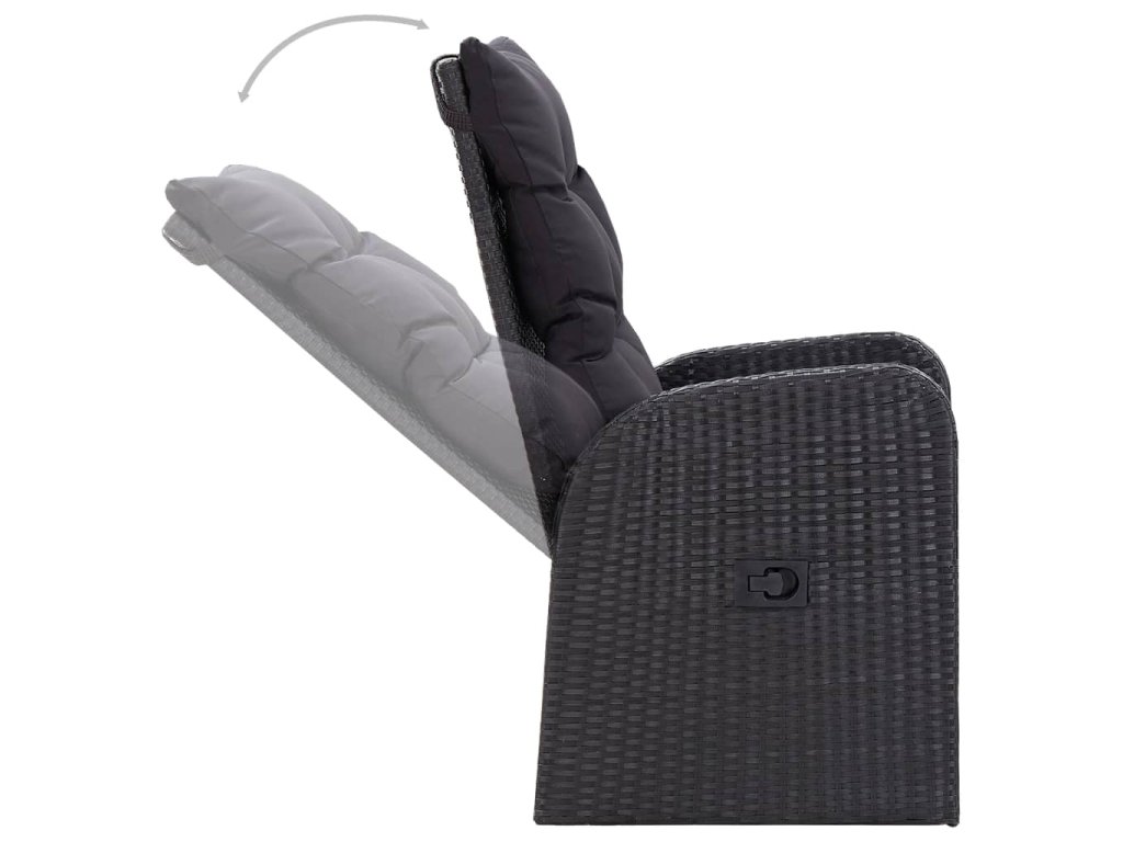 Stůl i židle mají rámy z práškově lakované oceli, jsou tedy robustní, stabilní a vhodné pro každodenní venkovní použití. Židle jsou vyrobené z voděodolného PE ratanu, takže se snadno čistí a hodně toho vydrží. Opěradlo si můžete nastavit stisknutím tlačítka na boku. Nábytek má lehkou konstrukci, lze ho tudíž bez námahy přesouvat. Husté polstrované podušky na sedák vám navíc zajistí mimořádné pohodlí. Jejich polyesterové potahy jsou nenáročné na údržbu a dají se stáhnout a vyprat. Hladká skleněná stolní deska, kterou jednoduše očistíte vlhkým hadříkem, je ideální k podávání jídla a pití nebo k vystavení různých dekorativních předmětů.