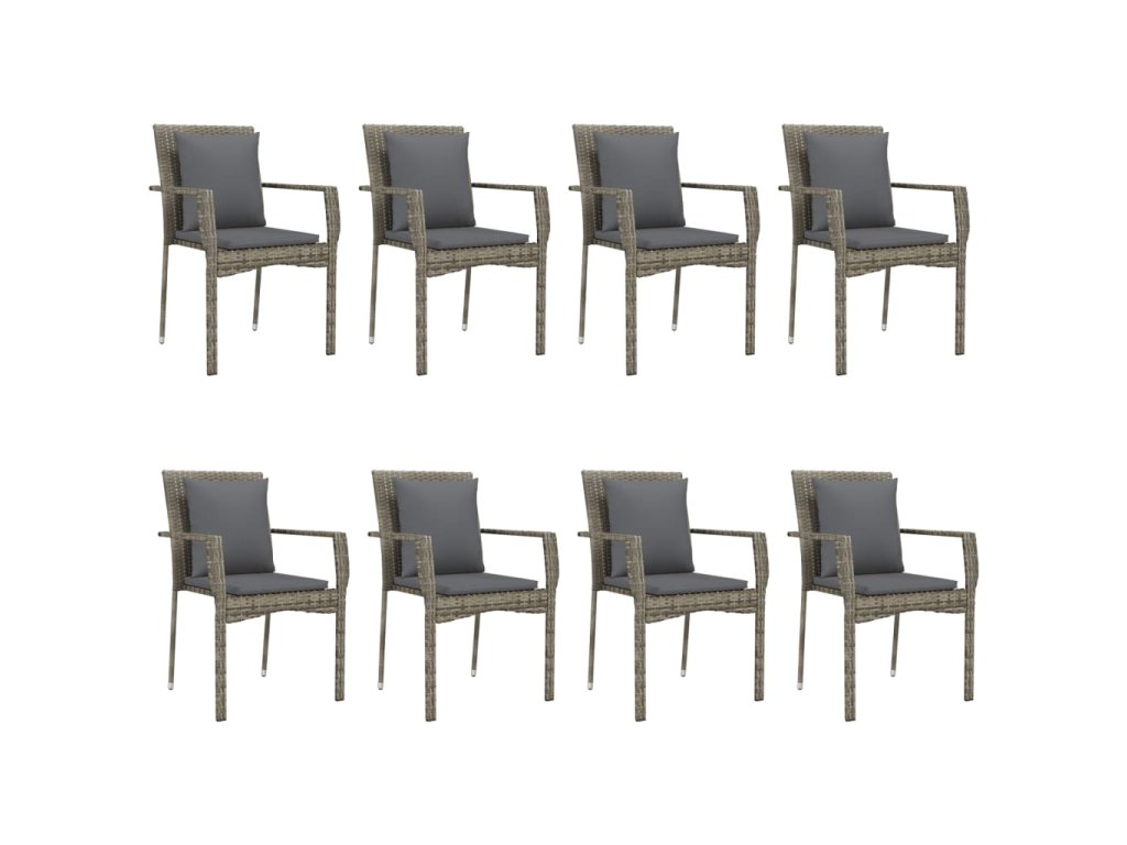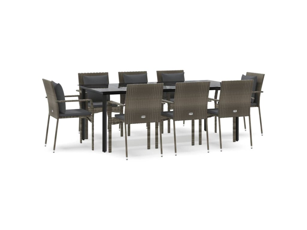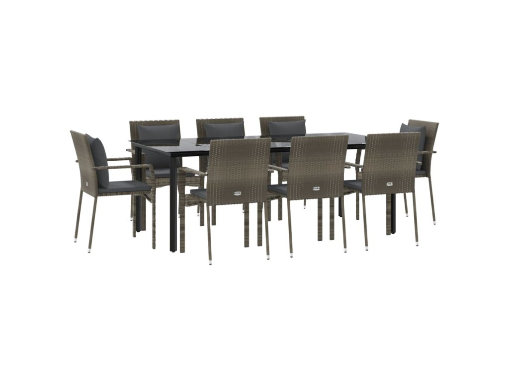 9dílný zahradní jídelní set s poduškami černý a šedý polyratan 3185118