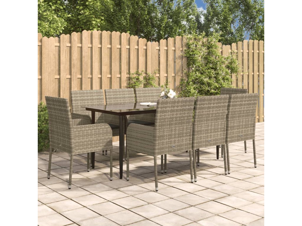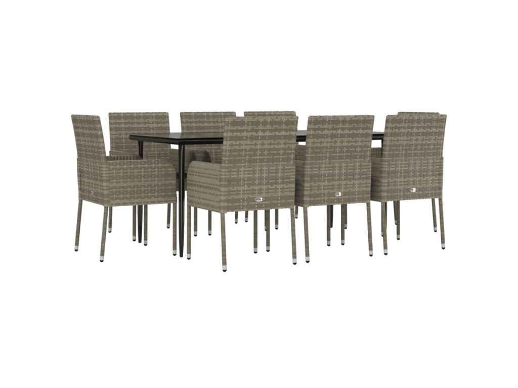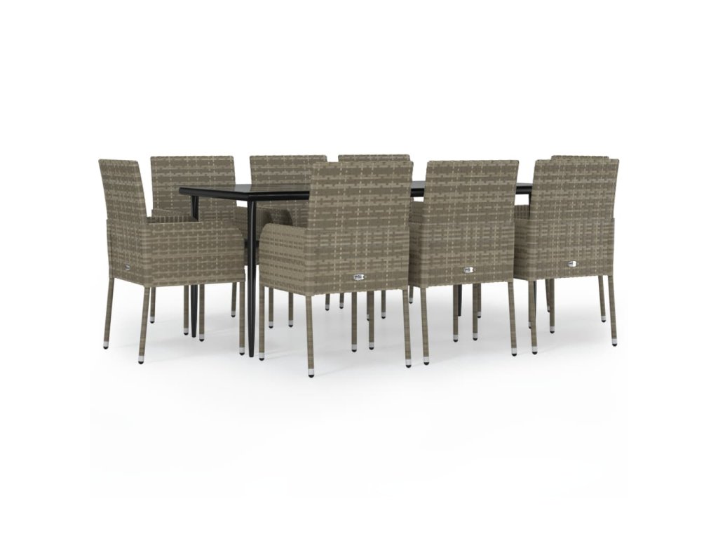 9dílný zahradní jídelní set s poduškami černý a šedý polyratan 3185152