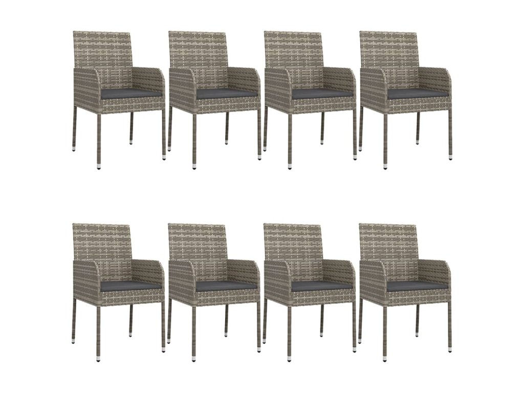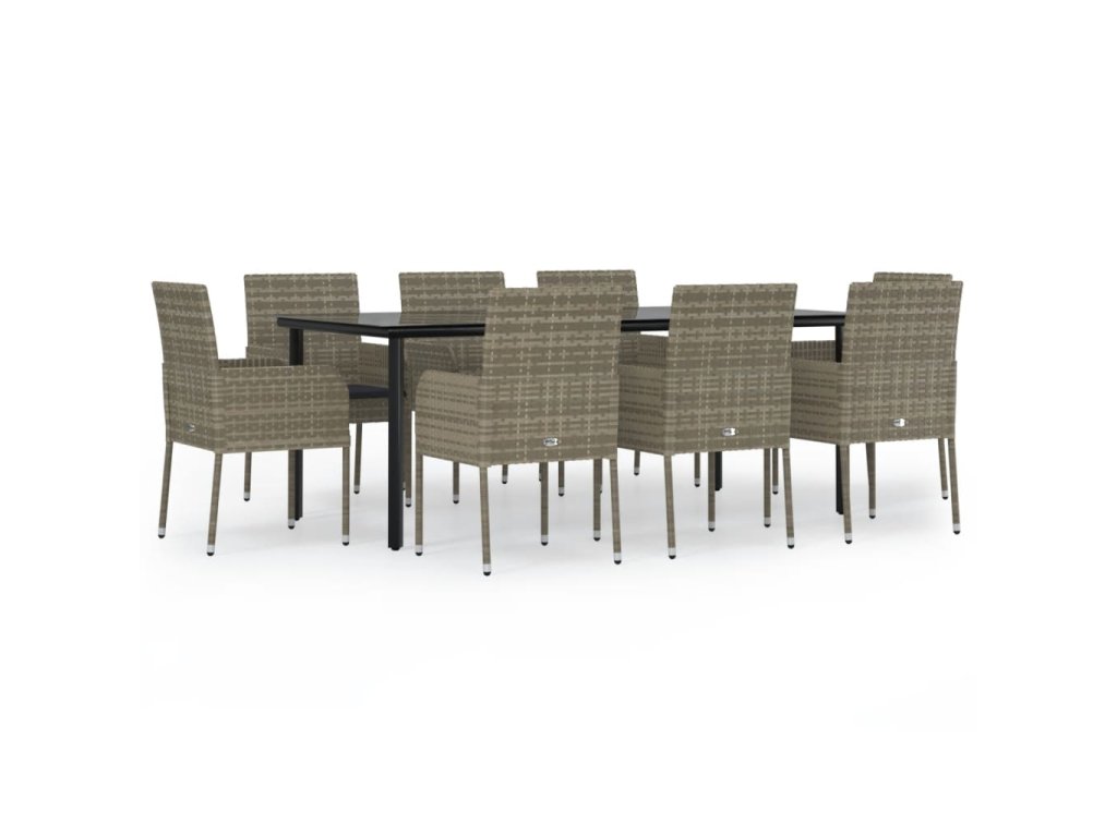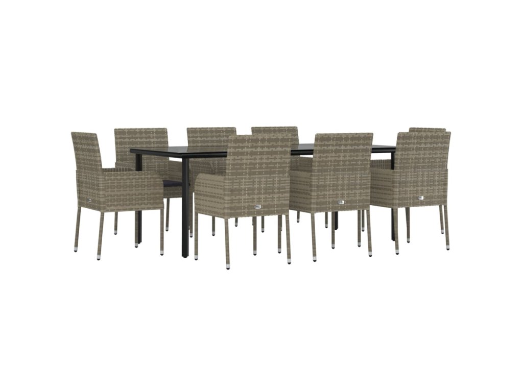 9dílný zahradní jídelní set s poduškami černý a šedý polyratan 3185165