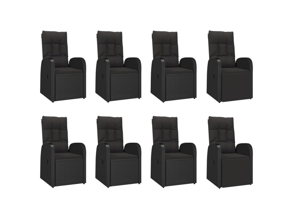 9dílný zahradní jídelní set s poduškami černý polyratan 3157605