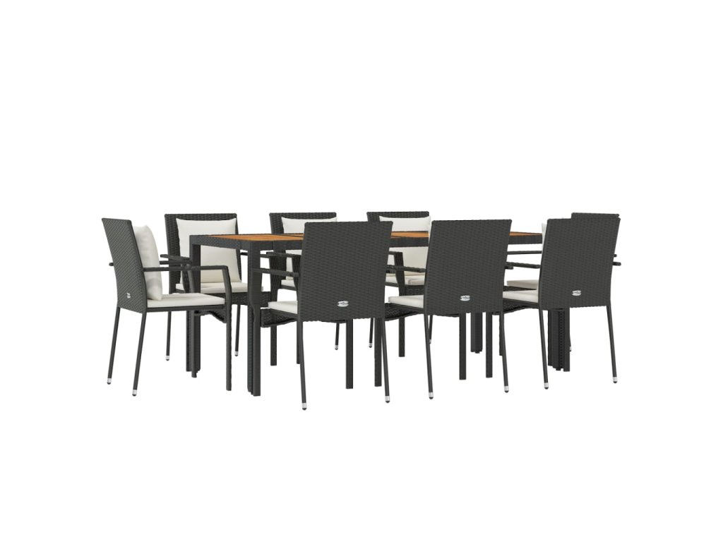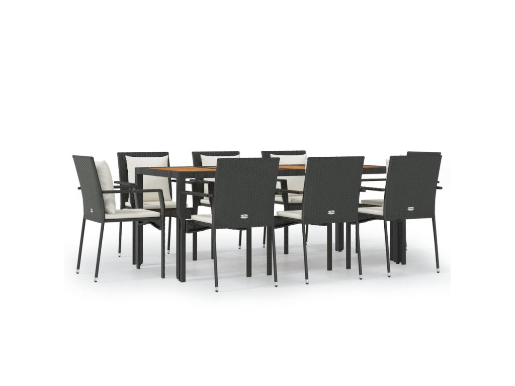 9dílný zahradní jídelní set s poduškami černý polyratan 3157968