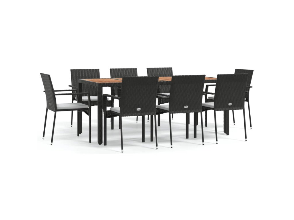 9dílný zahradní jídelní set s poduškami černý polyratan 3184992