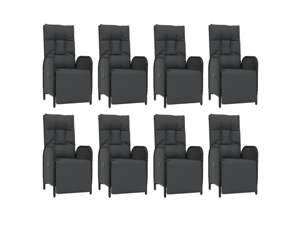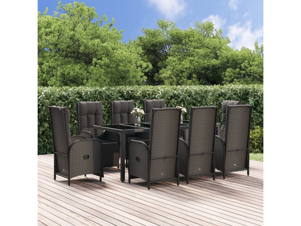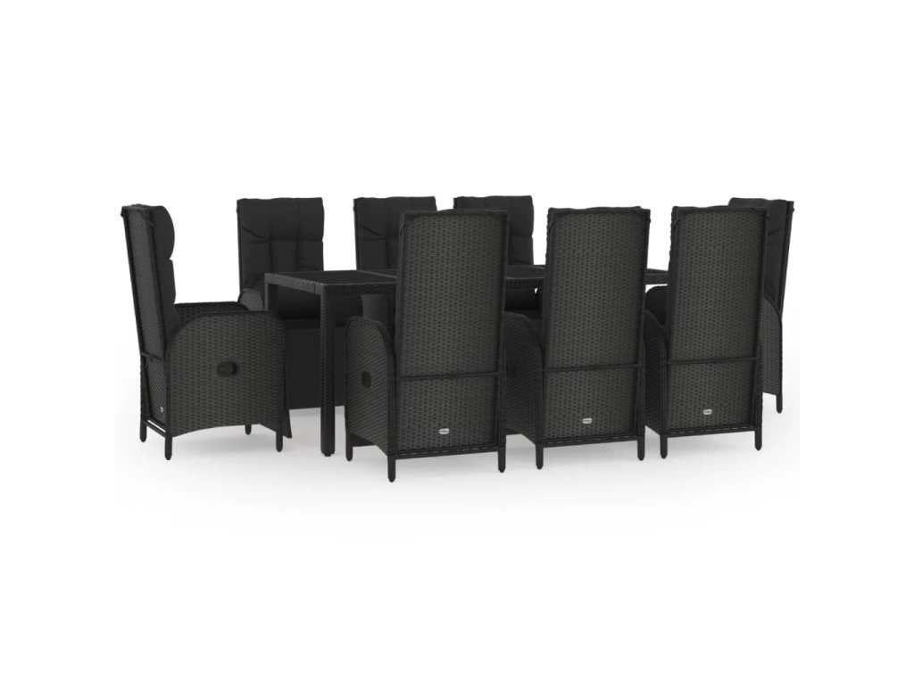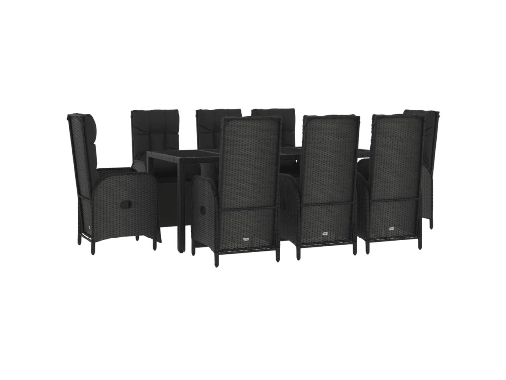 9dílný zahradní jídelní set s poduškami černý polyratan 3185064