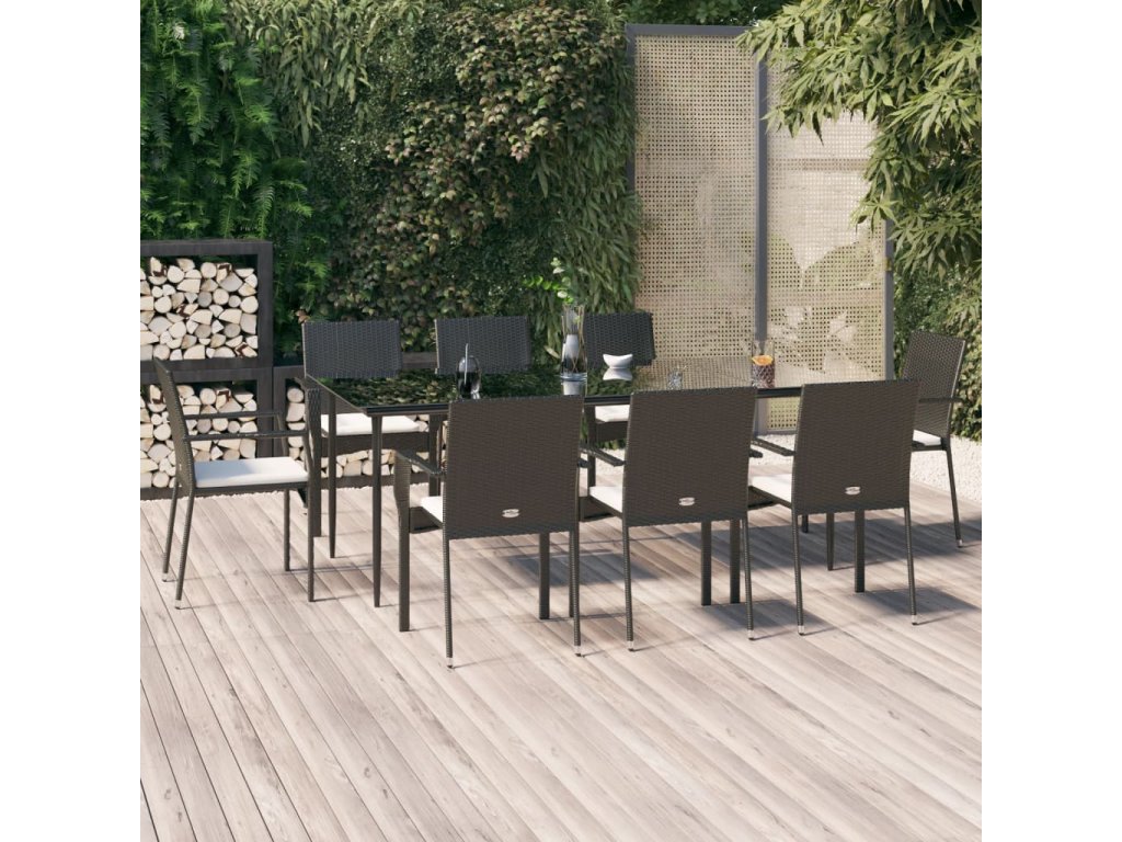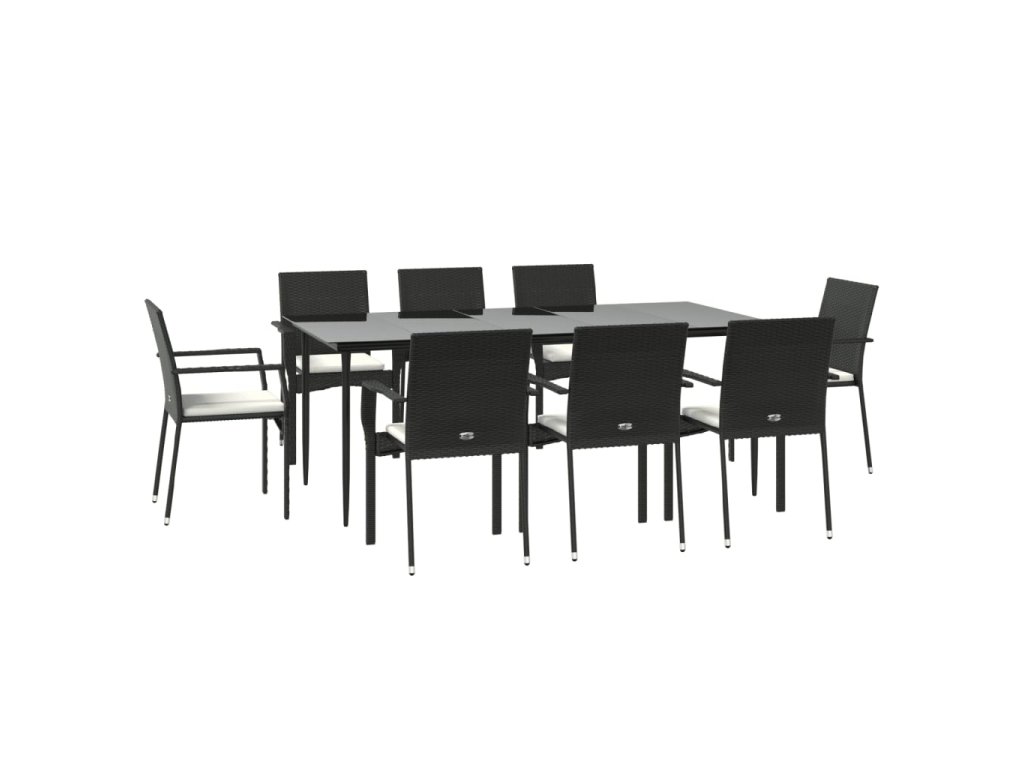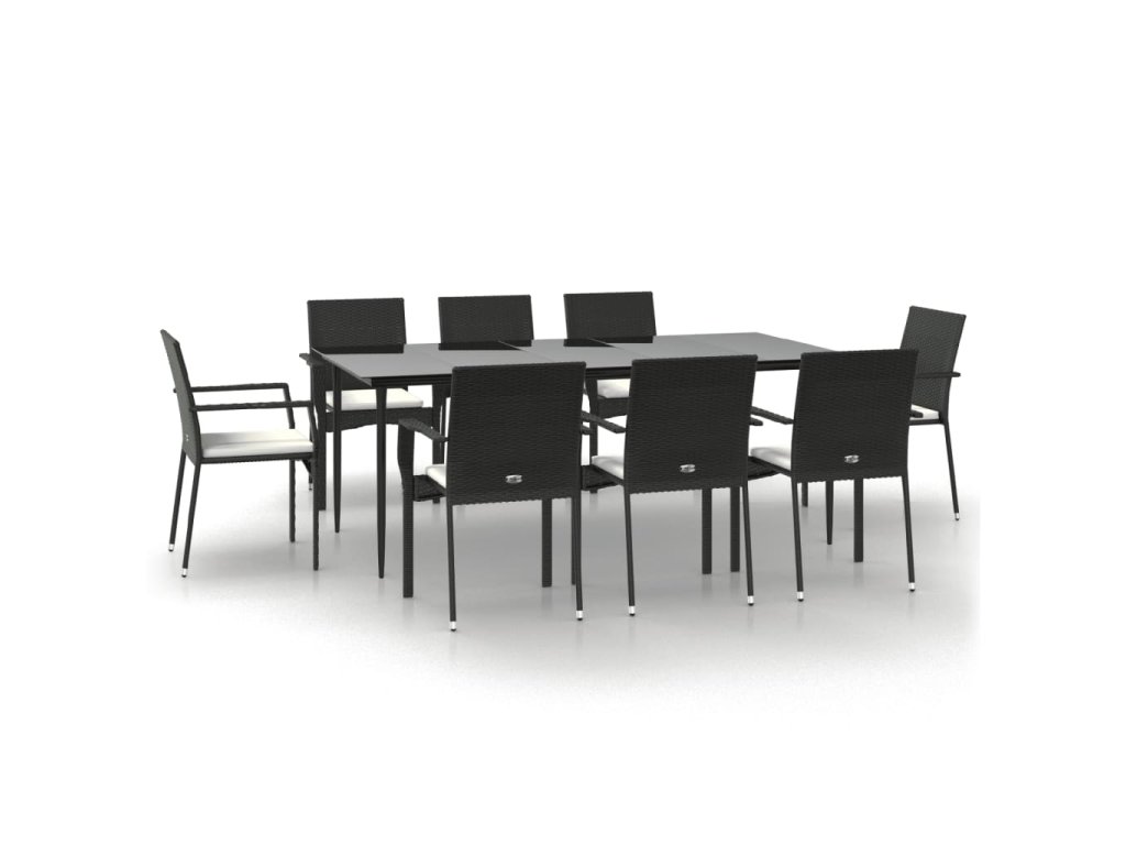 9dílný zahradní jídelní set s poduškami černý polyratan 3185124