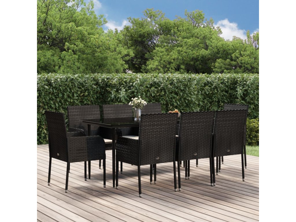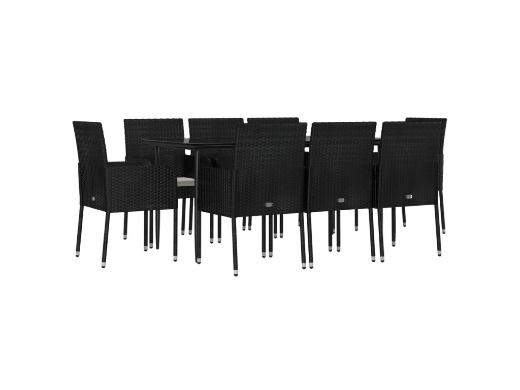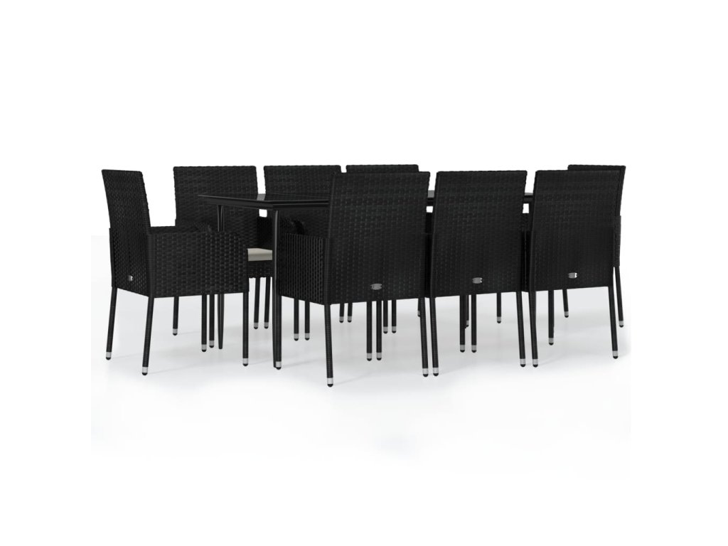9dílný zahradní jídelní set s poduškami černý polyratan 3185146