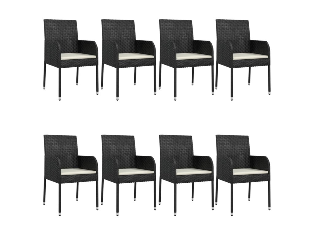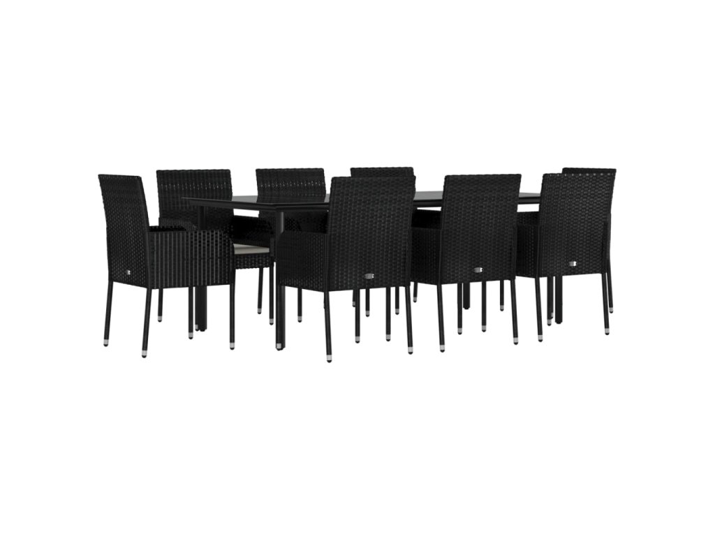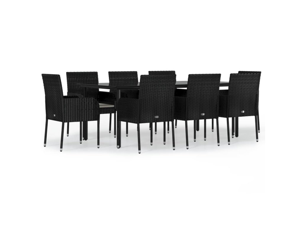9dílný zahradní jídelní set s poduškami černý polyratan 3185159