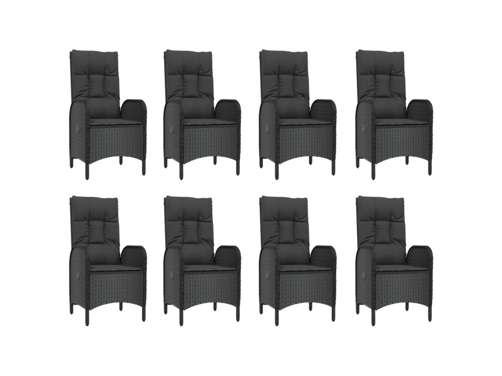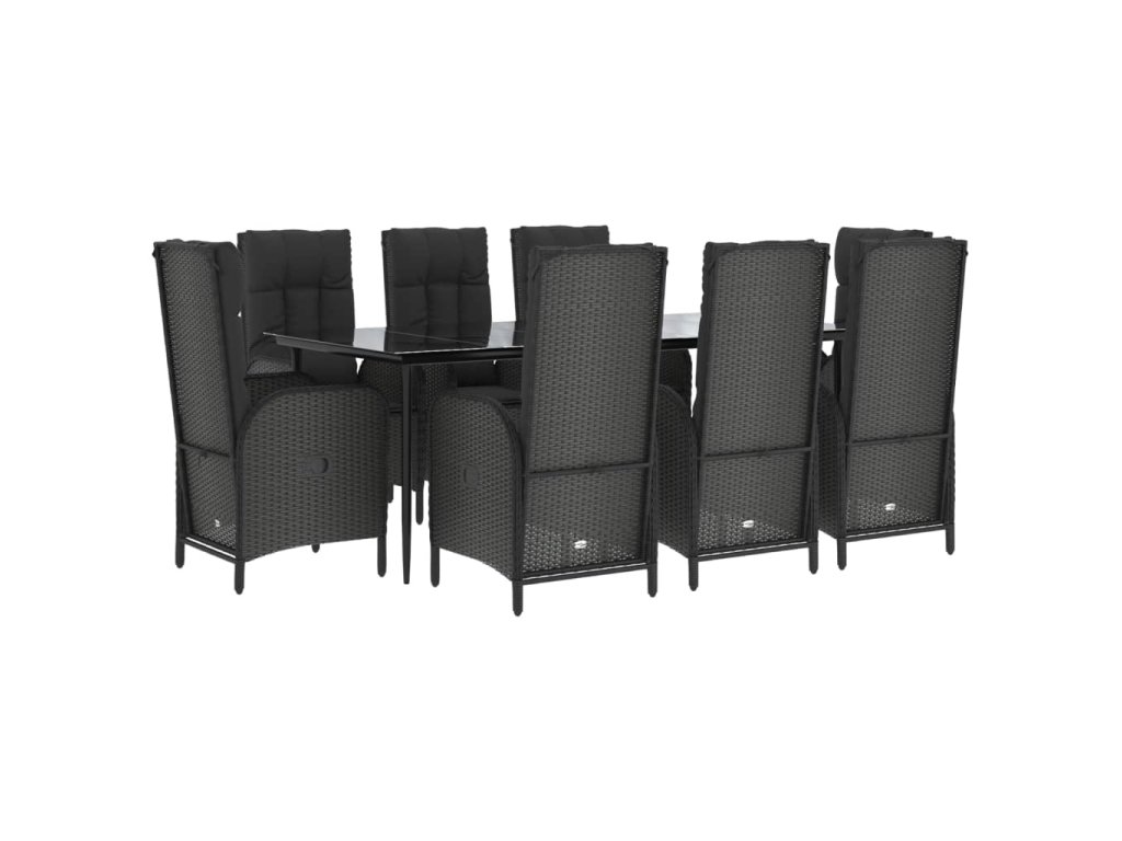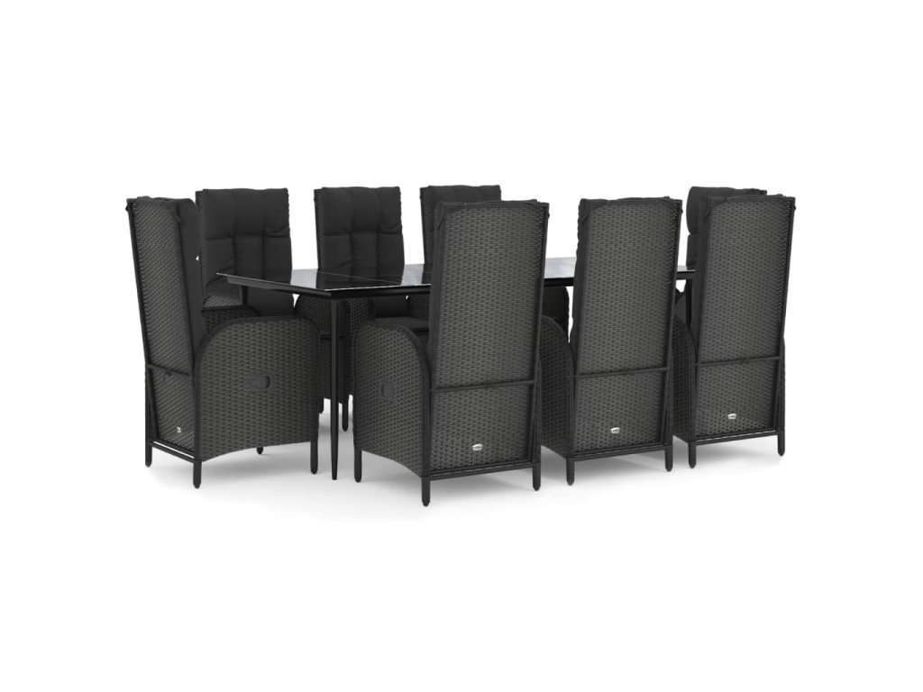 9dílný zahradní jídelní set s poduškami černý polyratan 3185174