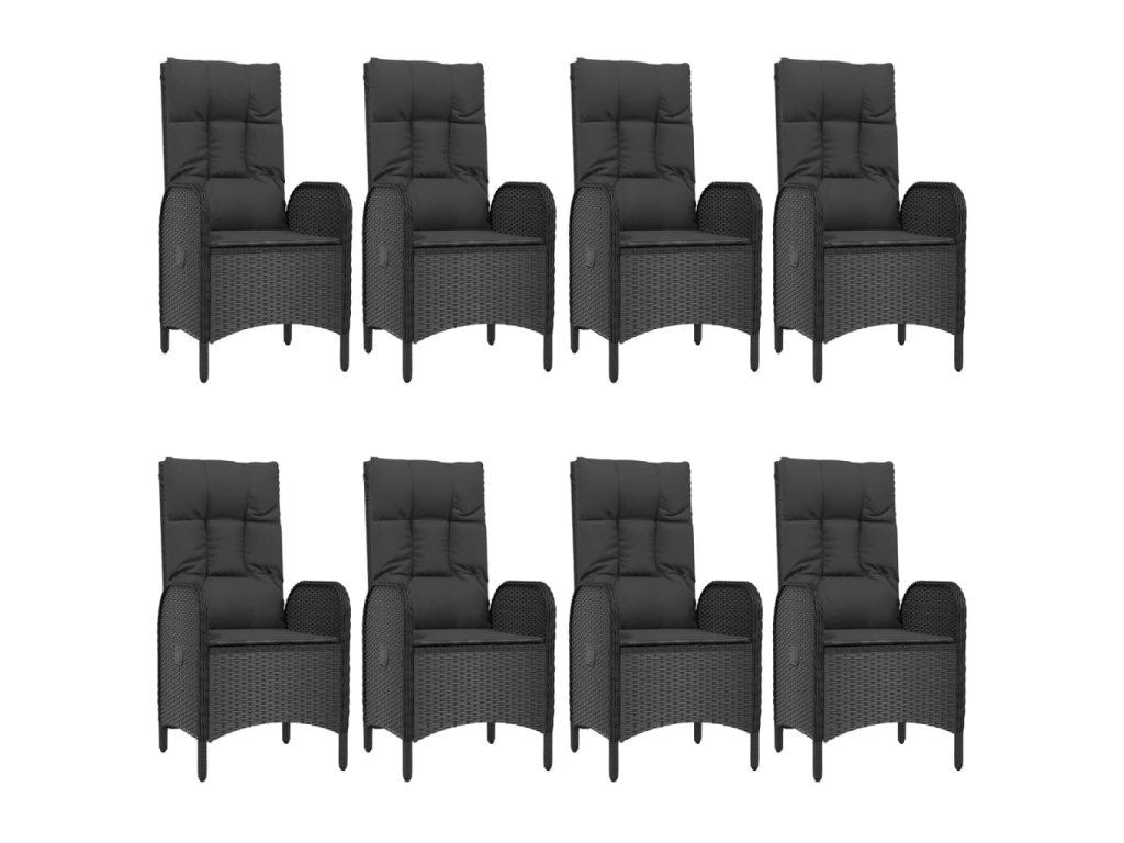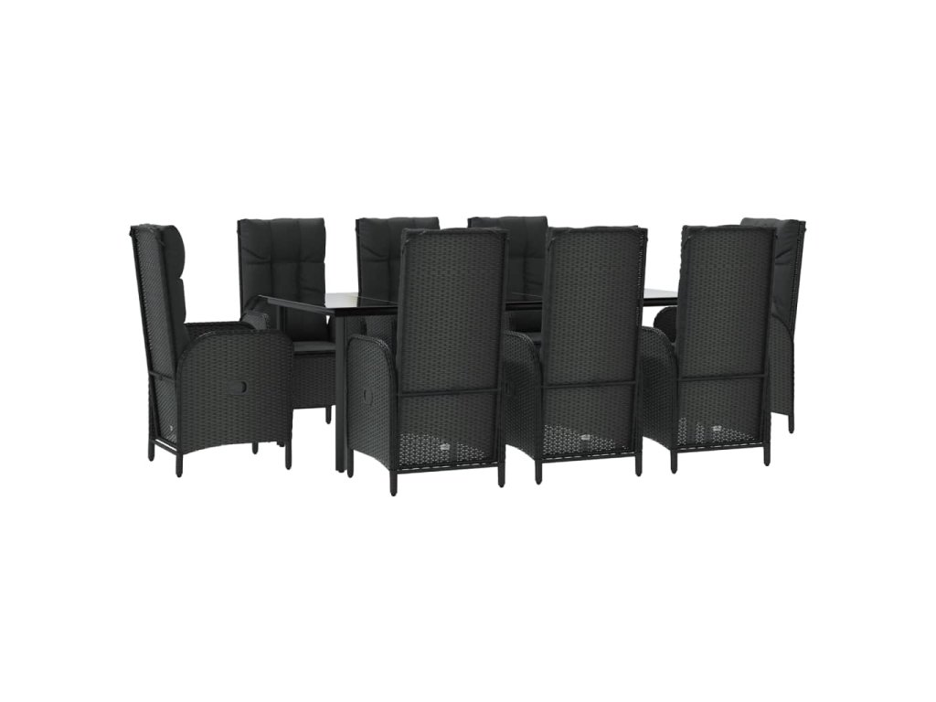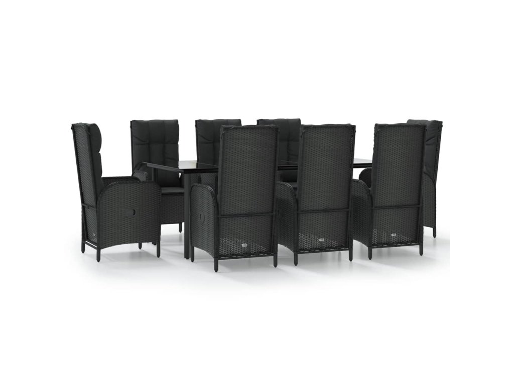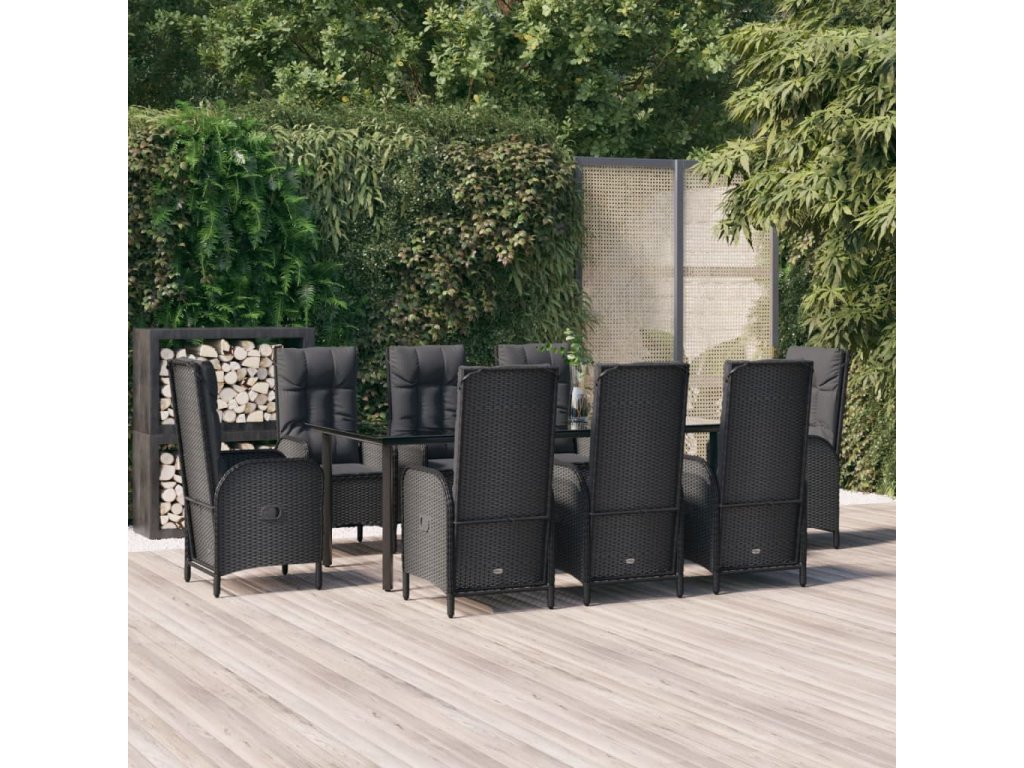 9dílný zahradní jídelní set s poduškami černý polyratan 3185194