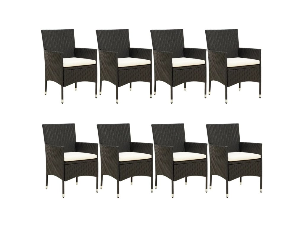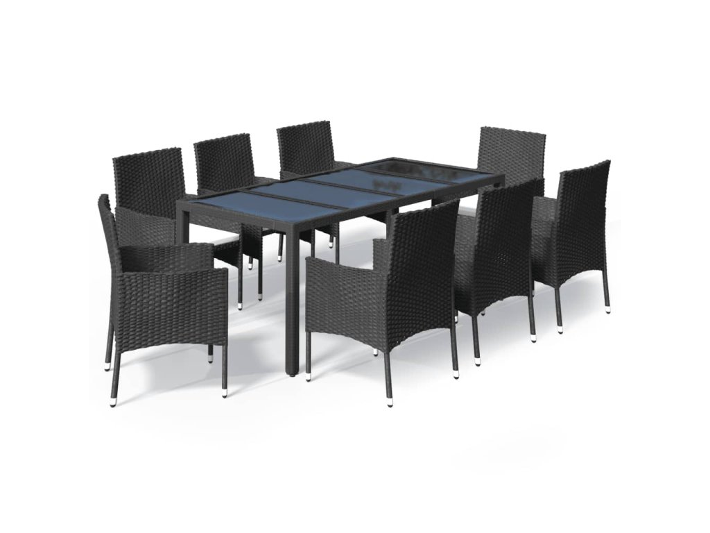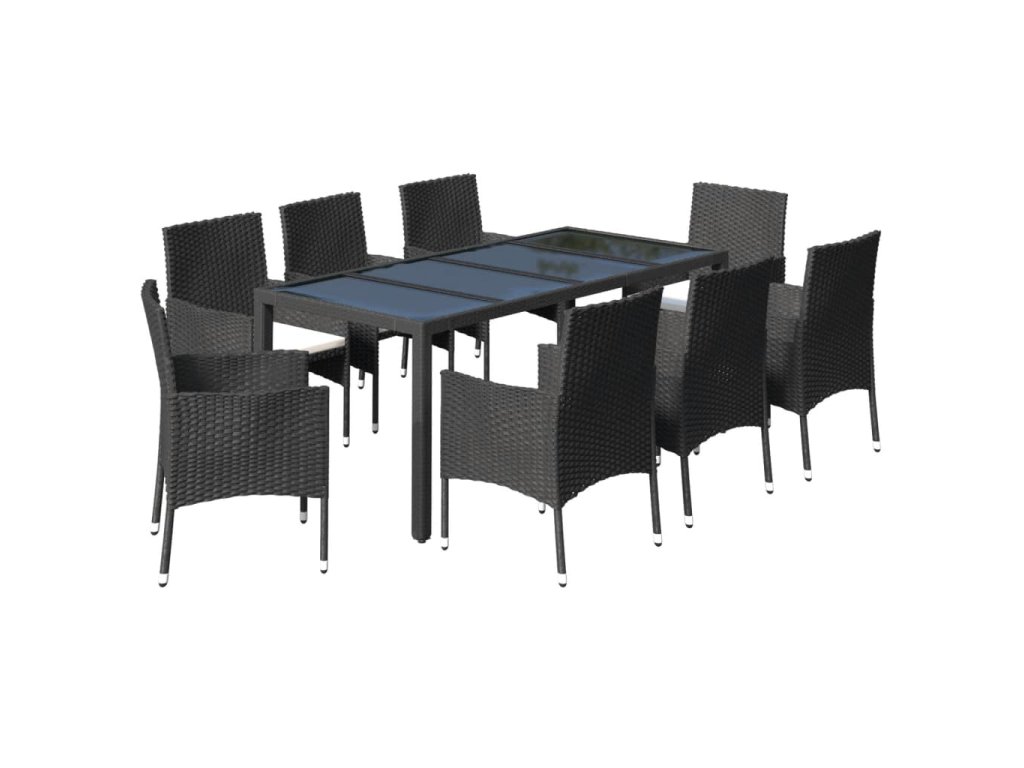 9dílný zahradní jídelní set s poduškami černý polyratan 3187321