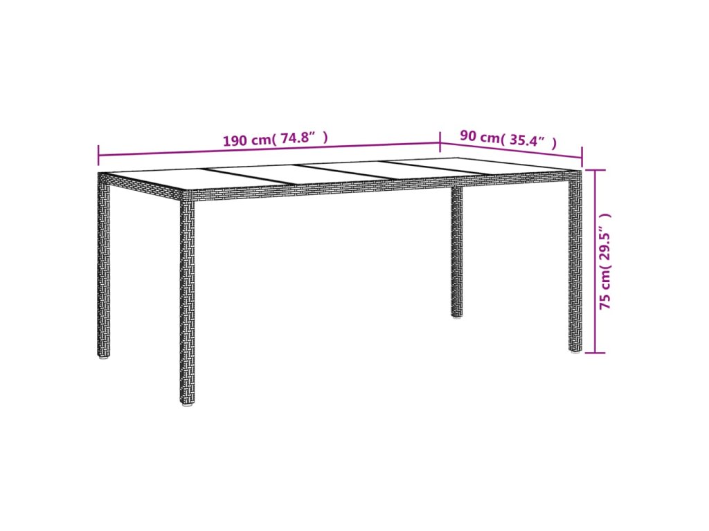 - Materiál: polyratan, práškově lakovaná ocel, tvrzené sklo