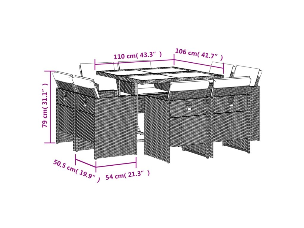 9dílný zahradní jídelní set s poduškami černý polyratan 3210655