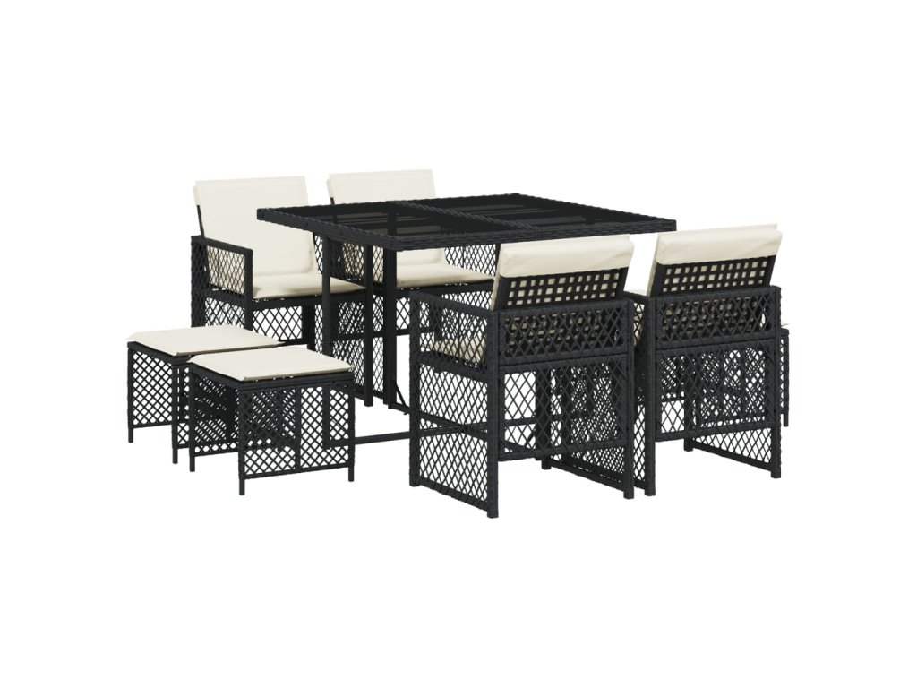 9dílný zahradní jídelní set s poduškami černý polyratan 3210774