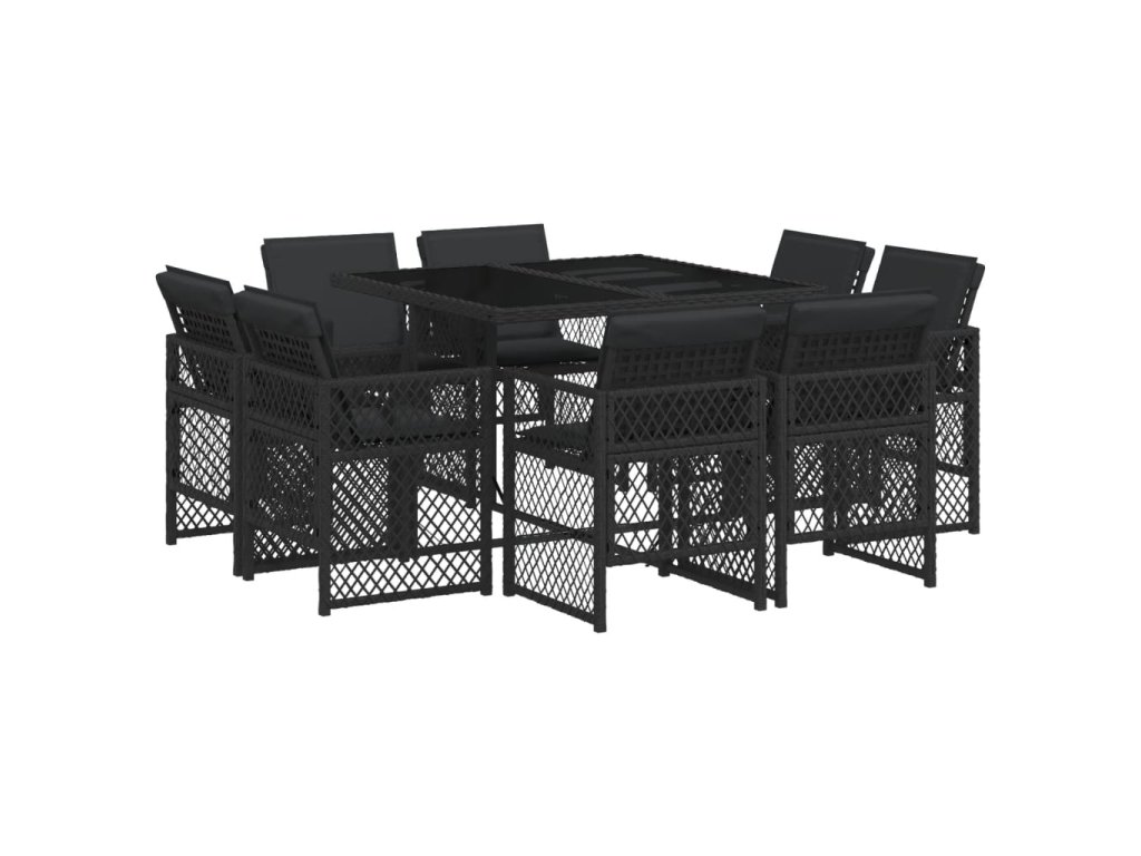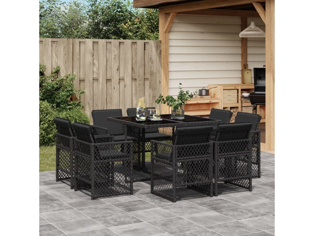 9dílný zahradní jídelní set s poduškami černý polyratan 3210835