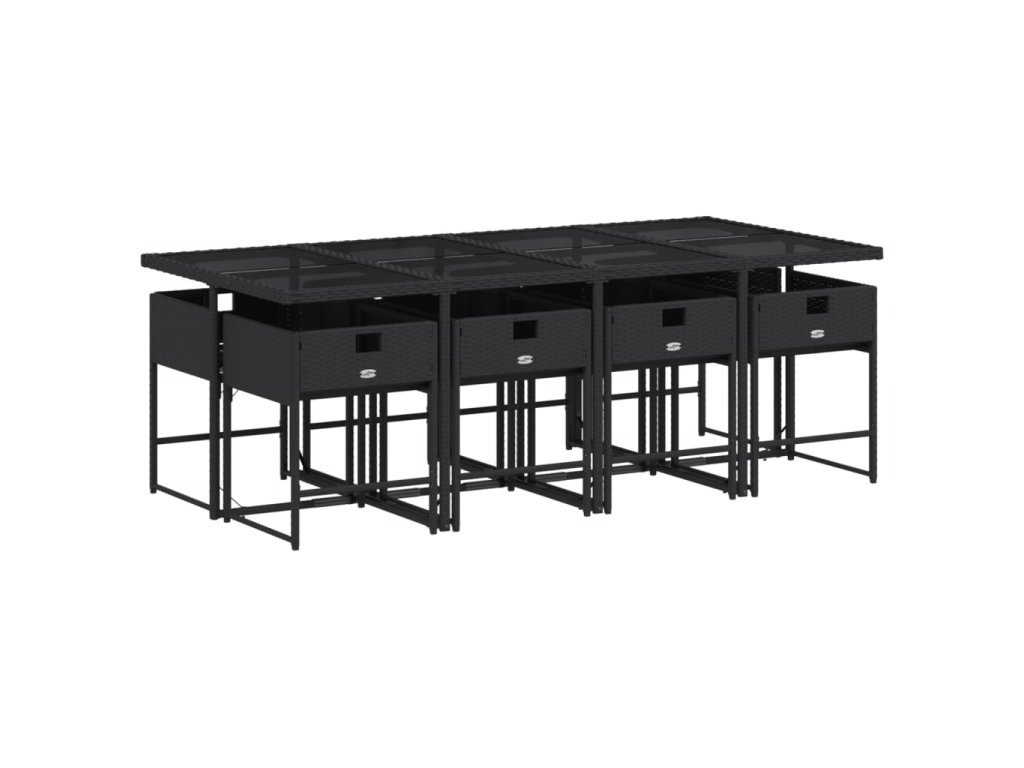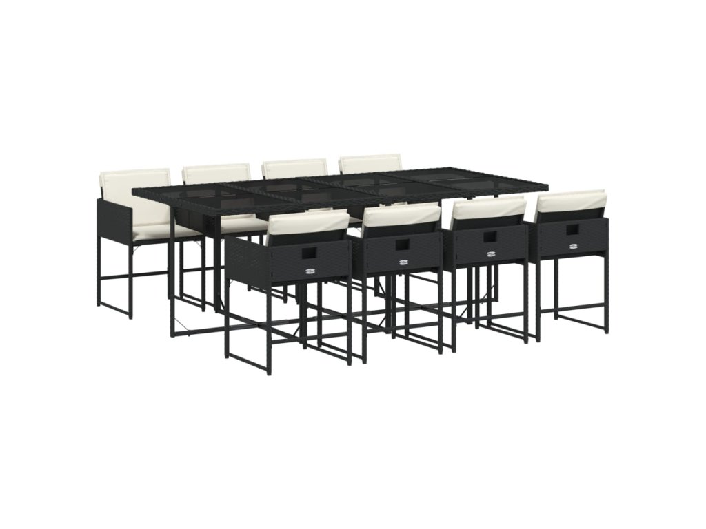 9dílný zahradní jídelní set s poduškami černý polyratan 3211278