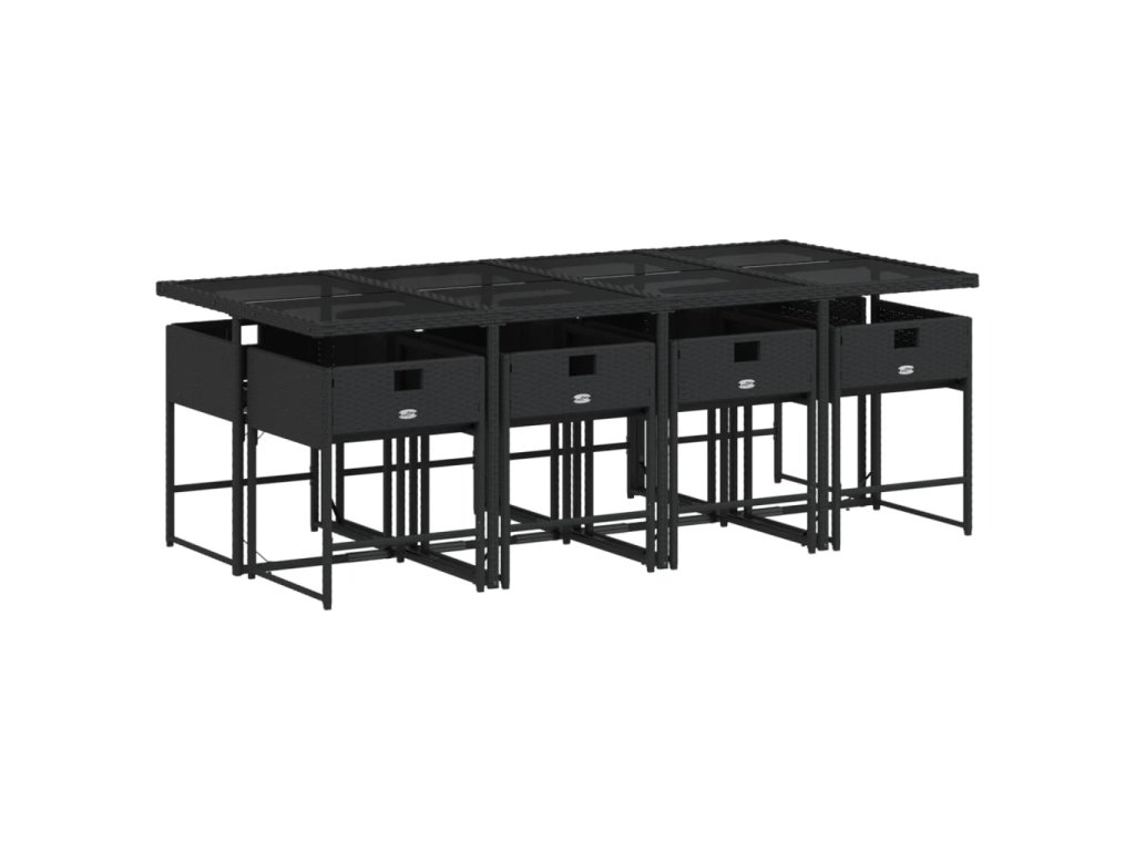 9dílný zahradní jídelní set s poduškami černý polyratan 3211279