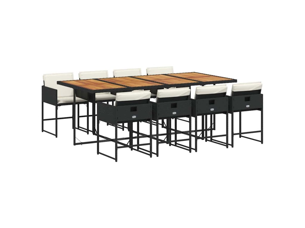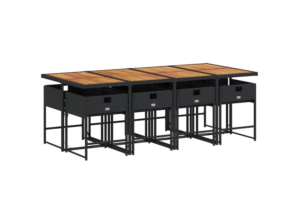 9dílný zahradní jídelní set s poduškami černý polyratan 3211287