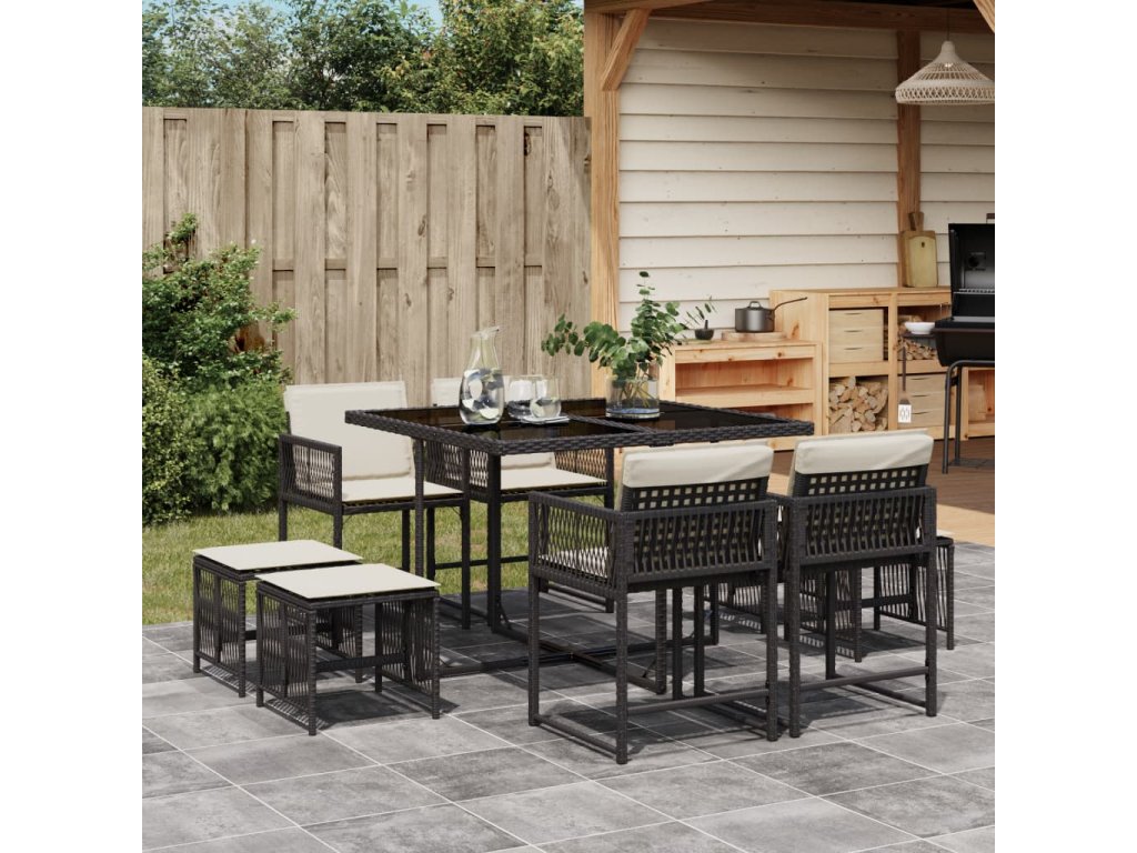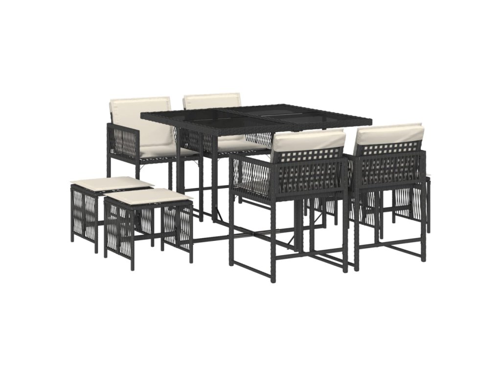 9dílný zahradní jídelní set s poduškami černý polyratan 3211494