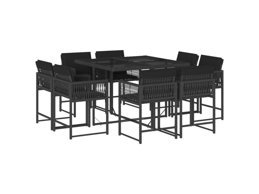 9dílný zahradní jídelní set s poduškami černý polyratan 3211555