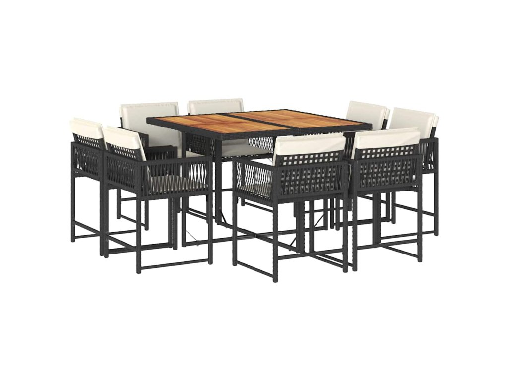 9dílný zahradní jídelní set s poduškami černý polyratan 3211563