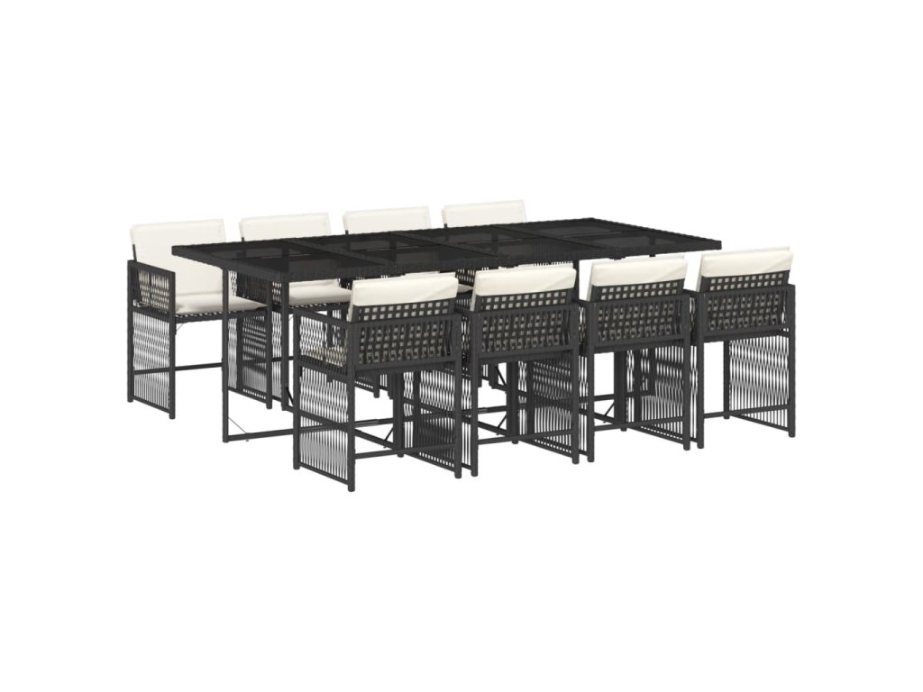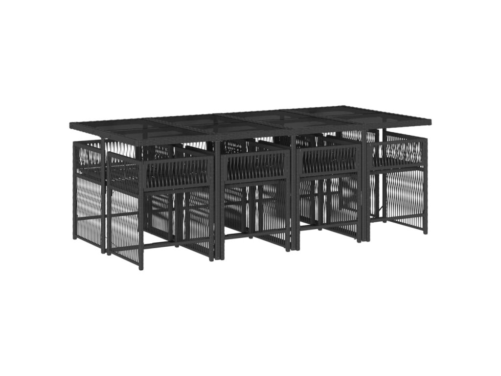 9dílný zahradní jídelní set s poduškami černý polyratan 3211638