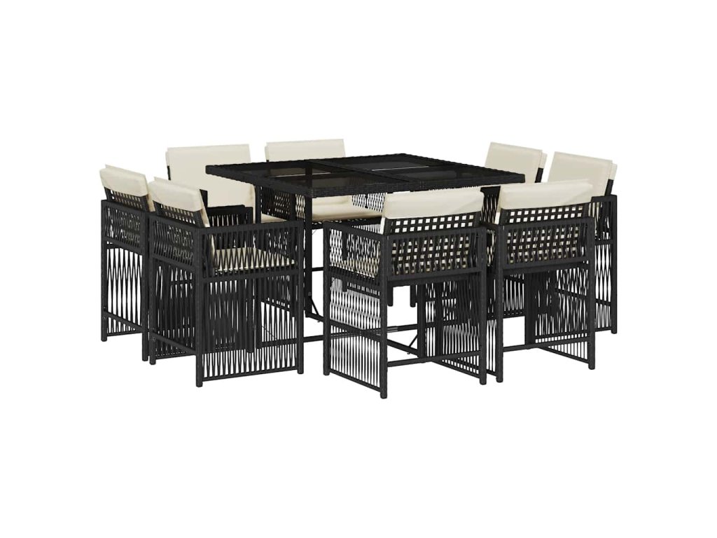 9dílný zahradní jídelní set s poduškami černý polyratan 3211734