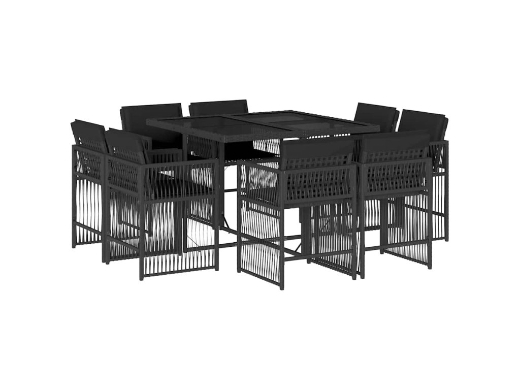 9dílný zahradní jídelní set s poduškami černý polyratan 3211735
